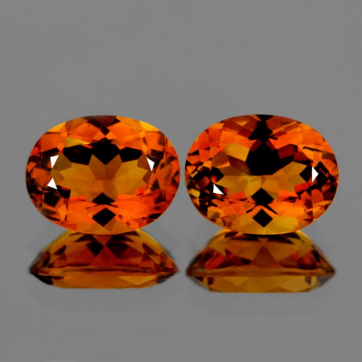 Natural Citrine ............ SHAPE : Oval SIZE ( L x W x D ) : 10.00 x 8.00 mm QUANTITY : 2 pieces (Perfect Matching Pair) COLOR : Madeira Golden Orange AAA COLOR CLARITY : Flawless-VVS1 AAA Grade ORIGIN : Brazil HARDNESS : 7 LUSTER : Excellent!!! TREATMENT : Heated