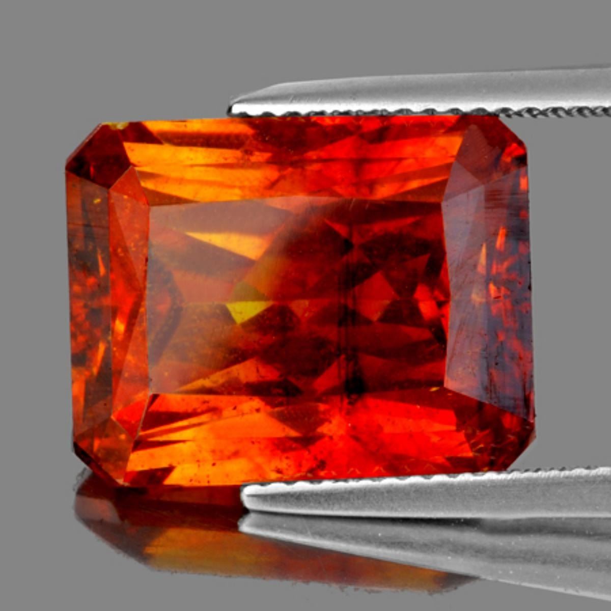 Natural Sphalerite ; WEIGHT : 8.86 cts; SHAPE : Rectangle (Princess Cut) SIZE ( L x W x D ) : 12.52 x 9.76 x 6.90 mm; QUANTITY : 1 piece; COLOR : Intense Orange AAA Color; CLARITY : VS; AAA Grade; ORIGIN : Santander,Spain; HARDNESS : 5; LUSTER : Brilliantly Sparkling; TREATMENT : 100% Natural Unheated;