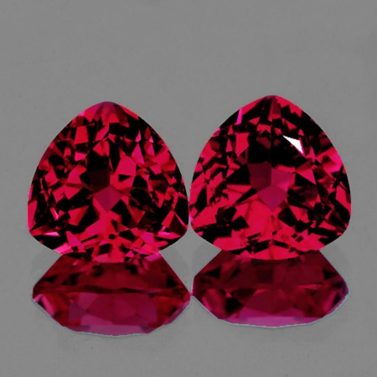 Natural Pink Topaz; WEIGHT : 20.64 cts SHAPE : Trilliant SIZE ( L x W x D ) : 14.00 mm QUANTITY : 2 pieces (Perfectly Matched Pair) COLOR : Best AAA Pink Red CLARITY : Flawless-VVS1 ORIGIN : Africa HARDNESS : 8 LUSTER : Excellent!!! TREATMENT : Treated