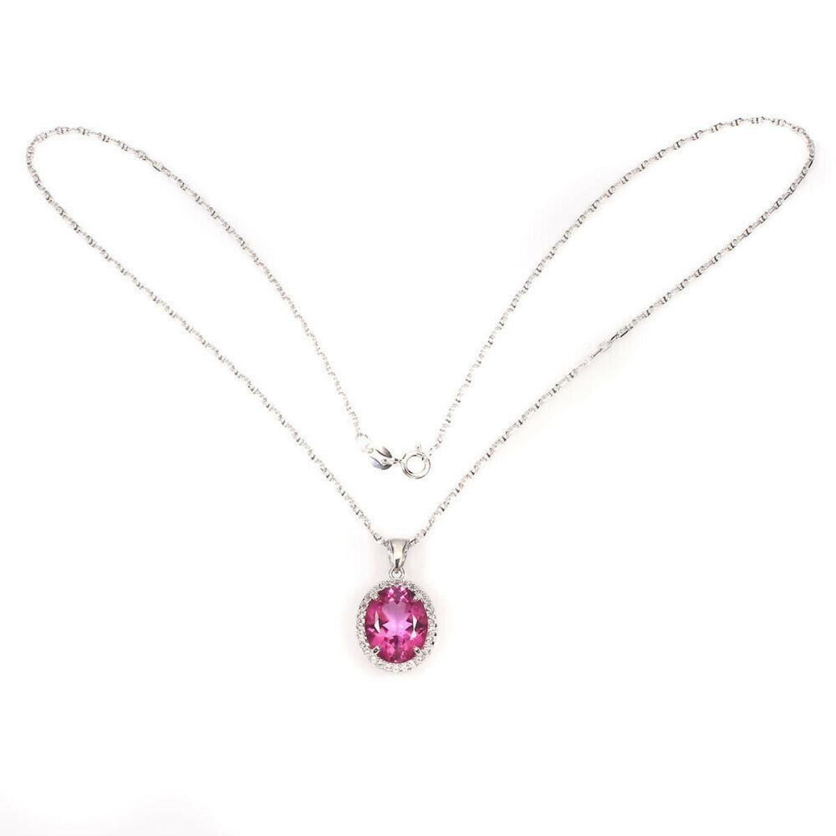 NECKLACE..........TYPE OF METAL....925 STERLING SILVER;PLATE...14K WHITE GOLD;LENGTH (INCHES)16.MAIN STONE....PINK TOPAZ....OTHER GEMSCUBIC ZIRCONIA.....TOTAL WEIGHT.....21.21 CT (TOTAL WEIGHT OF SILVER + STONE)DIMENSION* STONE 12.0 X 10.0 MM. * CZ 1.0 MM. * STONES PART LENGTH 22.0 X 13.0 MM.;MAIN STONE SHAPE...OVAL CUT;MAIN STONE COLOR...AAA PINK.;CLARITY/GRADE..IF.;LUSTERCHARMINGTREATMENT...HEATED ;ORIGIN...AFRICA;HARDNESS..8;