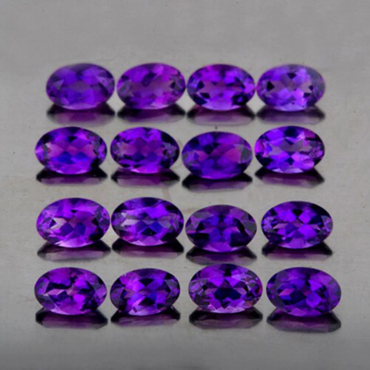 Natural Amethyst; SHAPE : Oval; SIZE ( L x W x D ) : 4.00 x 3.00 mm; QUANTITY : 16 pieces ( Perfectly Matched Set ) COLOR : Intense Purple AAA COLOR; CLARITY : Flawless-VVS1; ORIGIN : Africa; HARDNESS : 7; LUSTER : Excellent!!! TREATMENT : 100% Natural Unheated;