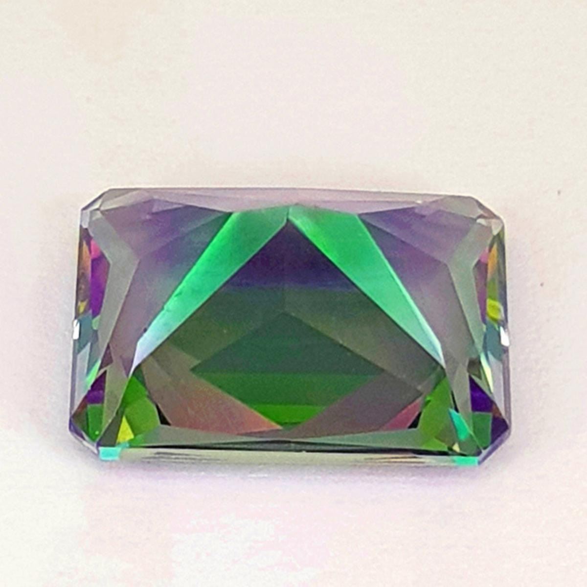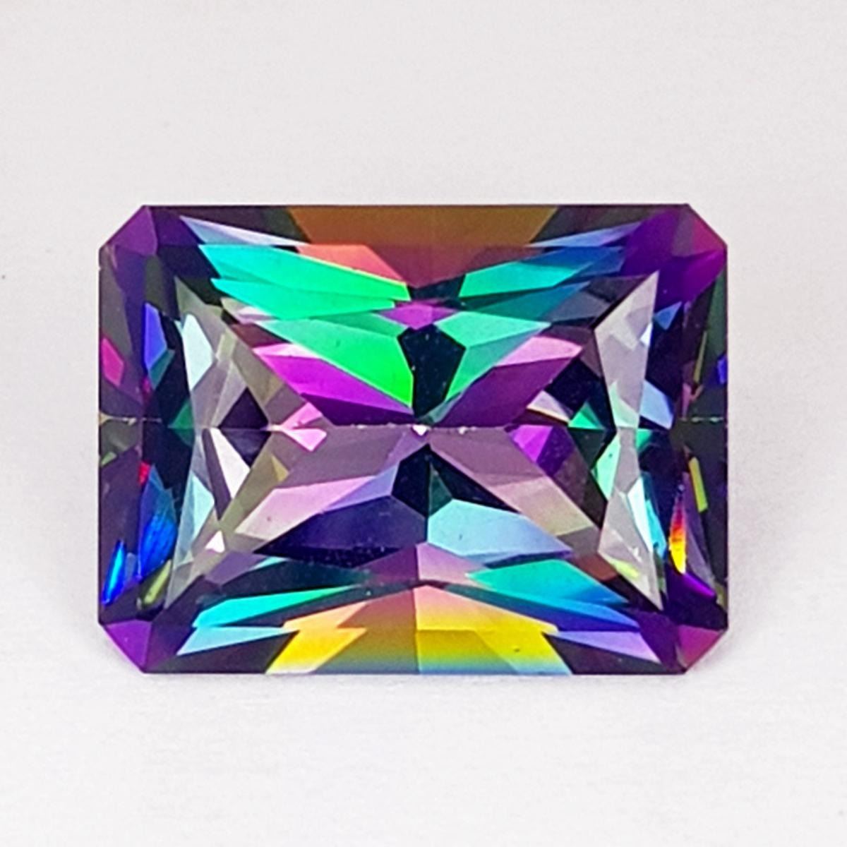 Natural Topaz WEIGHT : 13.36 cts SHAPE : Rectangle (Princess Cut) SIZE ( L x W x D ) : 16.00 x 12.00 mm QUANTITY : 1 pieces COLOR : Rainbow Mystic AAA Color CLARITY : Flawless-VVS1 AAA Grade ORIGIN : Africa HARDNESS : 8 LUSTER : Excellent!!! TREATMENT : Treated
