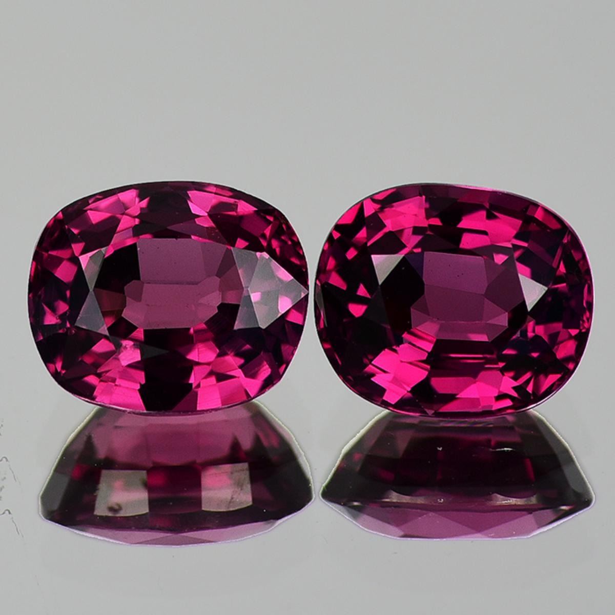 Natural Rhodolite Garnet (Umbalite) WEIGHT : 3.23 cts; SHAPE : Cushion; SIZE ( L x W x D ) : 7.00 x 6.00 mm; QUANTITY : 2 pieces ( Perfectly Matched Pair ) COLOR : Raspberry Pink AAA Color ; CLARITY : Flawless-VVS1 AAA Grade; ORIGIN : Umba Valley, Tanzania; HARDNESS : 7; LUSTER : AAA Fire!!! TREATMENT : 100% Natural Unheated;