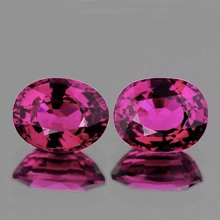 Natural Rhodolite Garnet (Umbalite) WEIGHT : 3.08 cts; SHAPE : Oval ; SIZE ( L x W x D ) : 7.50 x 6.00 mm; QUANTITY : 2 pieces ( Perfectly Matched Pair ) COLOR : Raspberry Pink AAA Color ; CLARITY : Flawless-VVS1 AAA Grade; ORIGIN : Umba Valley, Tanzania; HARDNESS : 7; LUSTER : AAA Fire!!! TREATMENT : 100% Natural Unheated;