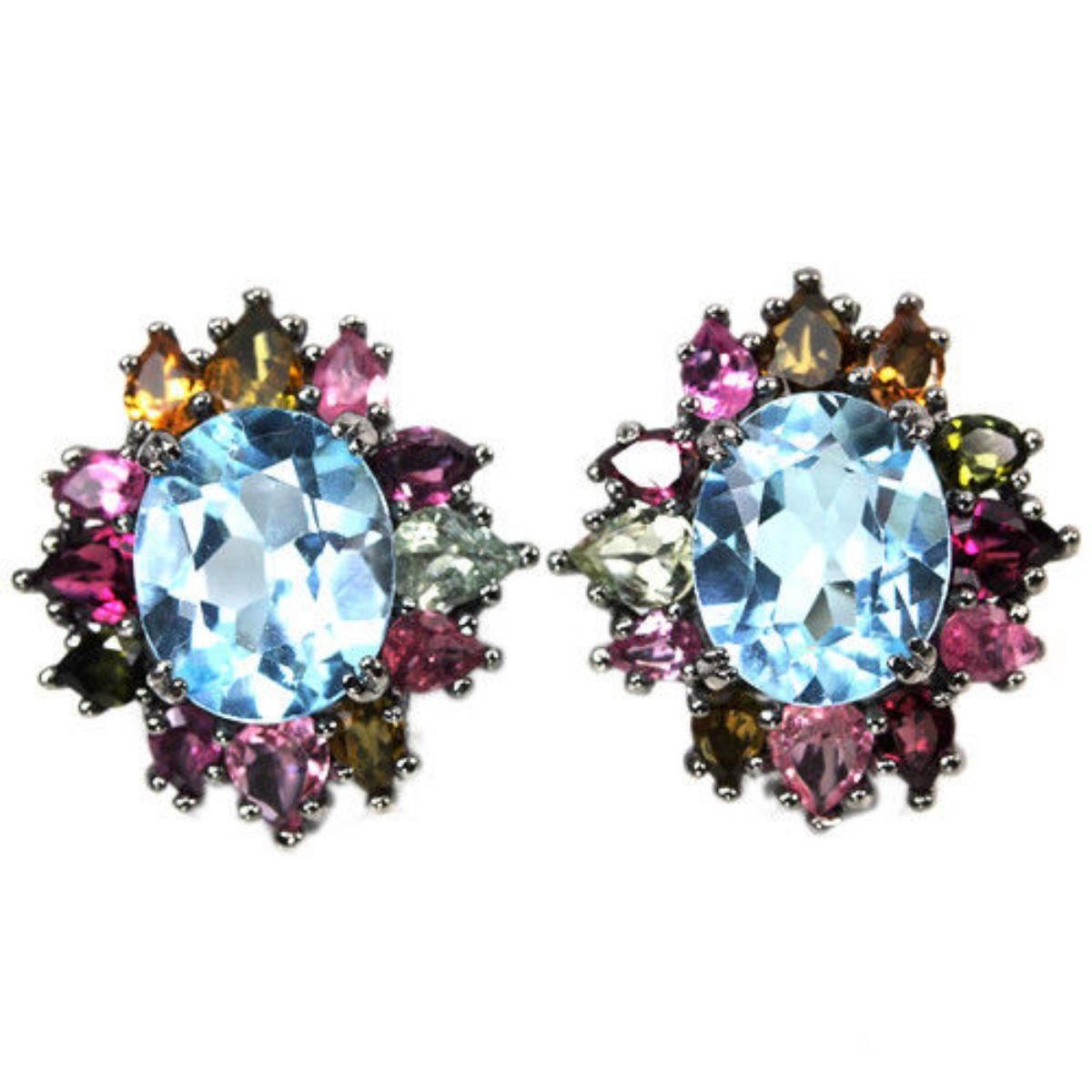REAL 12X10MM SKY BLUE TOPAZ & TOURMALINE 925SILVER EARRING 14K BLACK GOLD COATNG; STONE SHAPEOVAL PORTUGUESE CUTSTONE DIMENSION12 X 10 MM.ITEM WEIGHT7.8 GRAMCOLORSKY BLUECLARITYIF - VVSLUSTERDAZZLINGTREATMENTIRRADIATIONORIGIN OF STONEAFRICAHARDNESS8.0;FACE OF EARRING 22 X 20 MM. TOURMALINE 5 X 4 MM. & 4 X 3 MM.