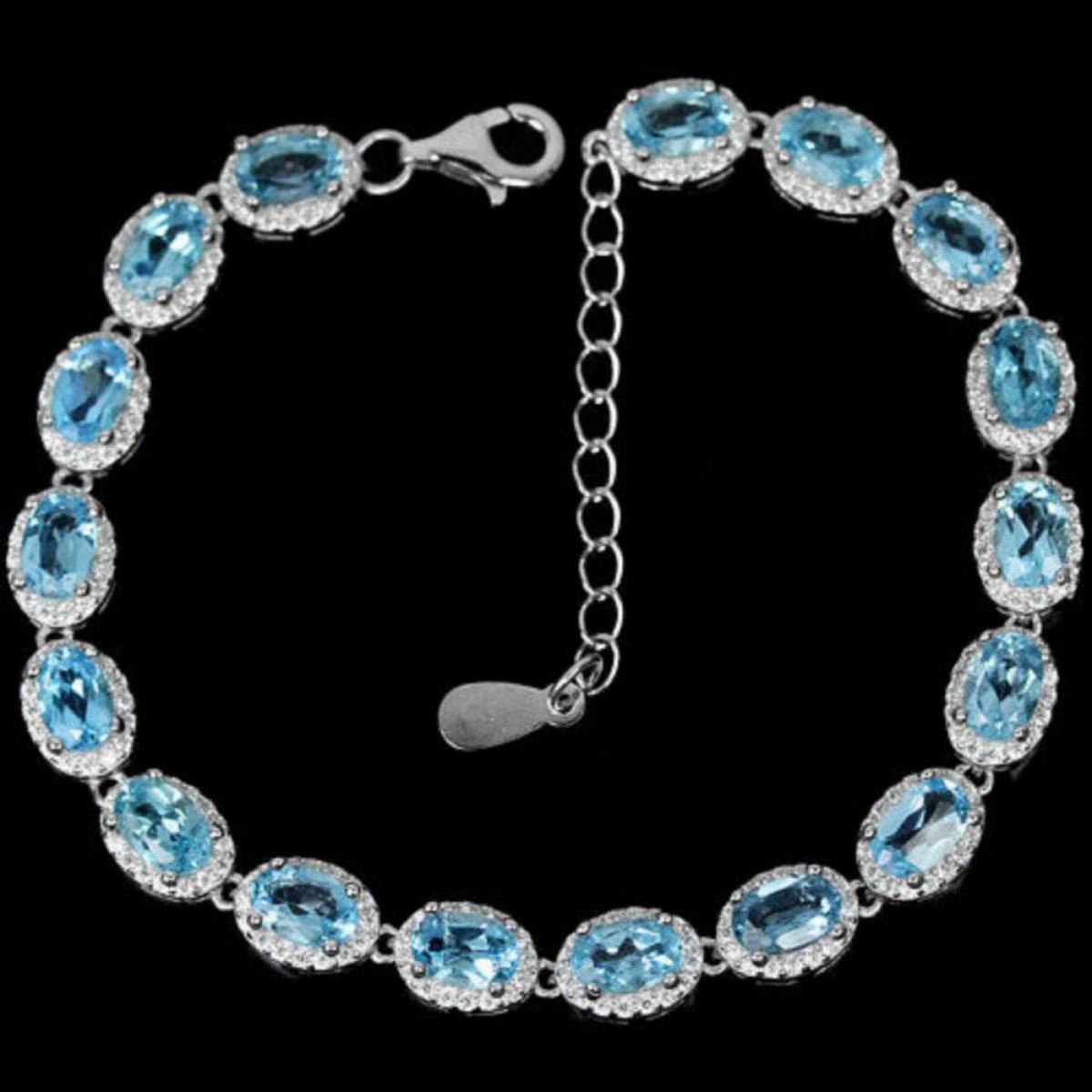 GENUINE SWISS BLUE TOPAZ & WHITE CZ 925 SILVER BRACELET 14K WHITE GOLD COATING; LENGTH OF ITEM (Inch.)7.75 ;ITEM QUANTITY1STONE SHAPEOVAL PORTUGUESE CUTSTONE DIMENSION6 X 4 MM.ITEM WEIGHT11.32 GRAMCOLORAAA SWISS BLUECLARITYIF - VVSLUSTERDAZZLINGTREATMENTIRRADIATIONORIGIN OF STONEAFRICAHARDNESS8.0;WHITE CUBIC ZIRCONIA 1 MM.