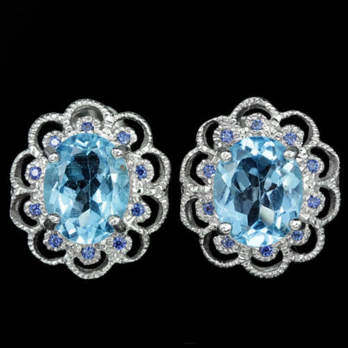 GENUINE 10X8 MM. SWISS BLUE TOPAZ & CZ 925 SILVER EARRING 14K WHITE GOLD COATING; STONE SHAPEOVAL PORTUGUESE CUTSTONE DIMENSION10 X 8 MM.ITEM WEIGHT5.86 GRAMCOLORSWISS BLUECLARITYIF - VVSLUSTERDAZZLINGTREATMENTIRRADIATIONORIGIN OF STONEAFRICAHARDNESS8.0FACE OF EARRING 16 X 15 MM.