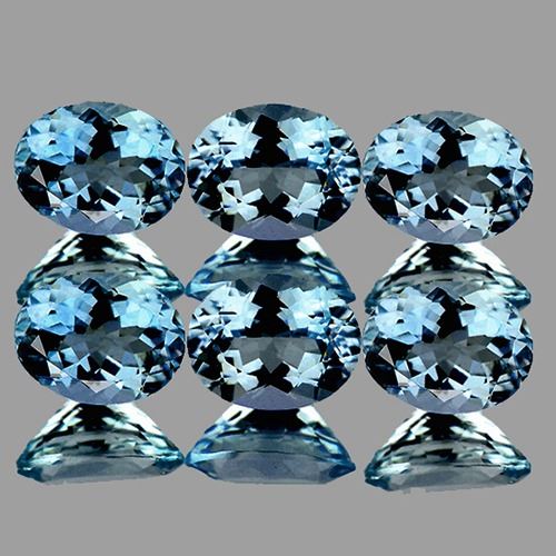 Natural Aquamarine ; SHAPE : Oval ; SIZE ( L x W x D ) : 4.50 x 3.50 mm; QUANTITY : 6 pieces (Perfectly Matched Set) COLOR : Santa Maria Blue AAA Color; CLARITY : Flawless-VVS1; ORIGIN : Santa Maria de Itabira; HARDNESS : 8; LUSTER : Excellent!!! TREATMENT : UNHeated 100% NATURAL;