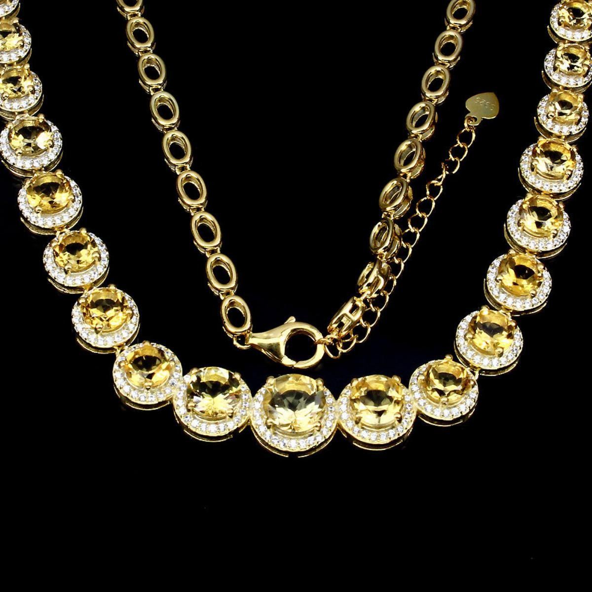 925 STERLING SILVER;PLATE....14K YELLOW GOLD;;LENGTH (INCHES)19.5MAIN STONECITRINEOTHER GEMSCUBIC ZIRCONIATOTAL WEIGHT149.86 CT (TOTAL WEIGHT OF SILVER + STONE)DIMENSION* STONE 5.0 TO 8.0 MM. * CZ 1.0 MM. * STONES PART LENGTH 210.0 X 11.0 MM.MAIN STONE SHAPEROUND CUTMAIN STONE COLORTOP RICH YELLOWCLARITY/GRADEIFLUSTERDELIGHTFULTREATMENTUNHEATEDORIGINBRAZILHARDNESS7