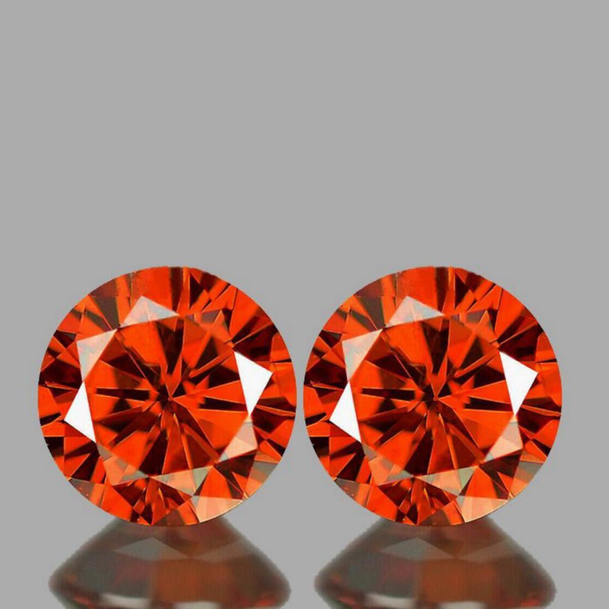 Natural Zircon ; SHAPE : Round (Brilliant Machine Cut) SIZE ( L x W x D ) : 6.00 mm; QUANTITY : 2 pieces ( Perfectly Matched Pair ) COLOR : Vivid Orange AAA Color; CLARITY : Flawless-VVS1 AAA Grade; ORIGIN : Cambodia; HARDNESS : 7.5; LUSTER : Best AAA Fire!!! TREATMENT : UNHeated 100% NATURAL;