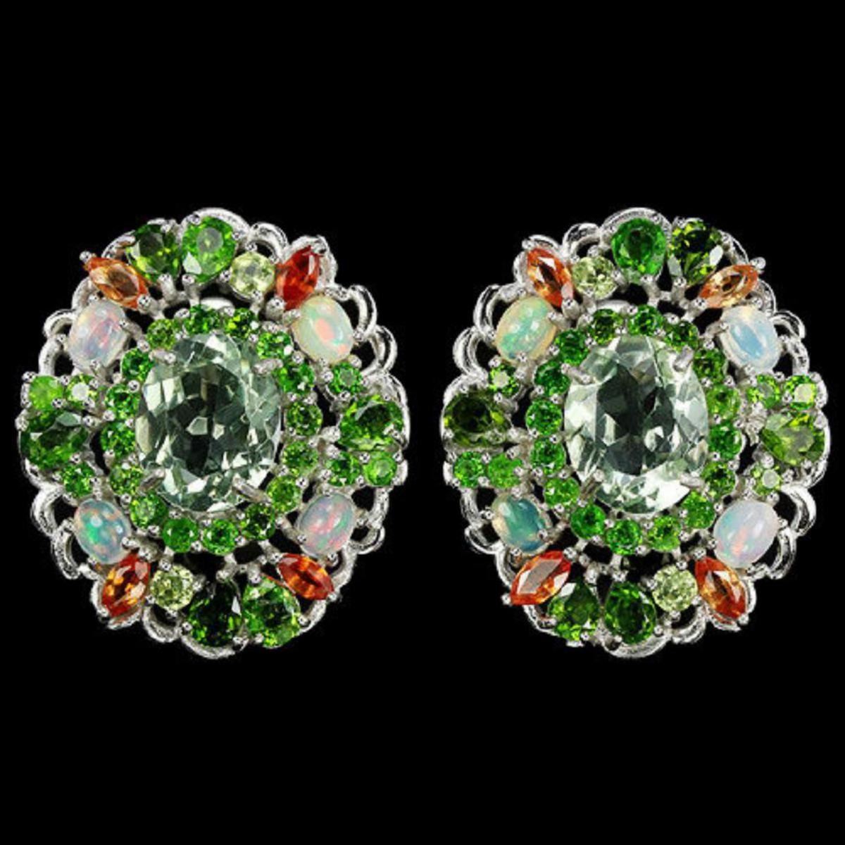 AMETHYST OPAL CHROME DIOPSIDE SAPPHIRE 925 SILVER EARRING 14K WHITE GOLD COATING;STONE SHAPE MIXED SHAPE STONE DIMENSION 10 X 8 MM. , 4 X 3 MM. , 4 X 2 MM. , 2.5 MM. , 2 MM. ITEM WEIGHT 9.62 GRAM COLOR MULTI COLOR CLARITY IF-VVS & TRANSLUCENT LUSTER FASCINATING TREATMENT NATURAL UNHEATED & HEATED ORIGIN OF STONE BRAZIL & AFRICA HARDNESS 5.5 - 9 OTHER FACE OF EARRING 25 X 22 MM.