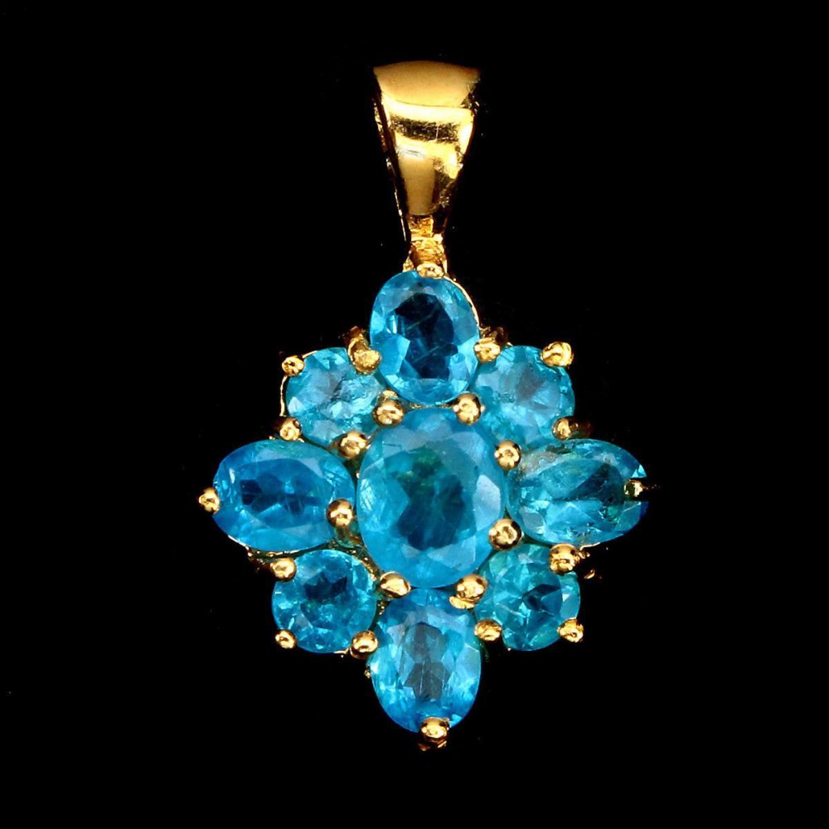 925 STERLING SILVERPLATE14K YELLOW GOLDMAIN STONEAPATITEOTHER GEMSTOTAL WEIGHT7.74 CT (TOTAL WEIGHT OF SILVER + STONE)DIMENSION* STONE 3.0 TO 5.0 X 4.0 MM. * FACE PENDANT 20.0 X 13.0 MM.MAIN STONE SHAPEOVAL CUTMAIN STONE COLORAAA NEON BLUECLARITY/GRADEIF TO VVSLUSTERELEGANT;ORIGINBrazil;HARDNESS5.0
