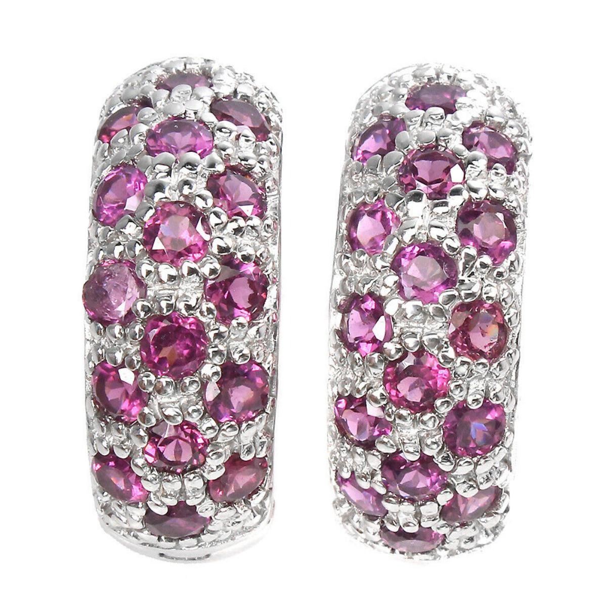 925 STERLING SILVER;PLATE-14K WHITE GOLD;MAIN STONE-RHODOLITE GARNET;TOTAL WEIGHT-11.21 GRAM (TOTAL WEIGHT OF SILVER + STONE)DIMENSION-* STONE 3.0 MM.;* FACE EARRINGS- 23.0 X 9.0 MM.;MAIN STONE SHAPE-ROUND CUT;MAIN STONE COLOR- PINK RASPBERRY;CLARITY/GRADE-IF TO VVS;TREATMENT-UNHEATED;ORIGIN-AFRICA;HARDNESS-7.0 - 7.5;