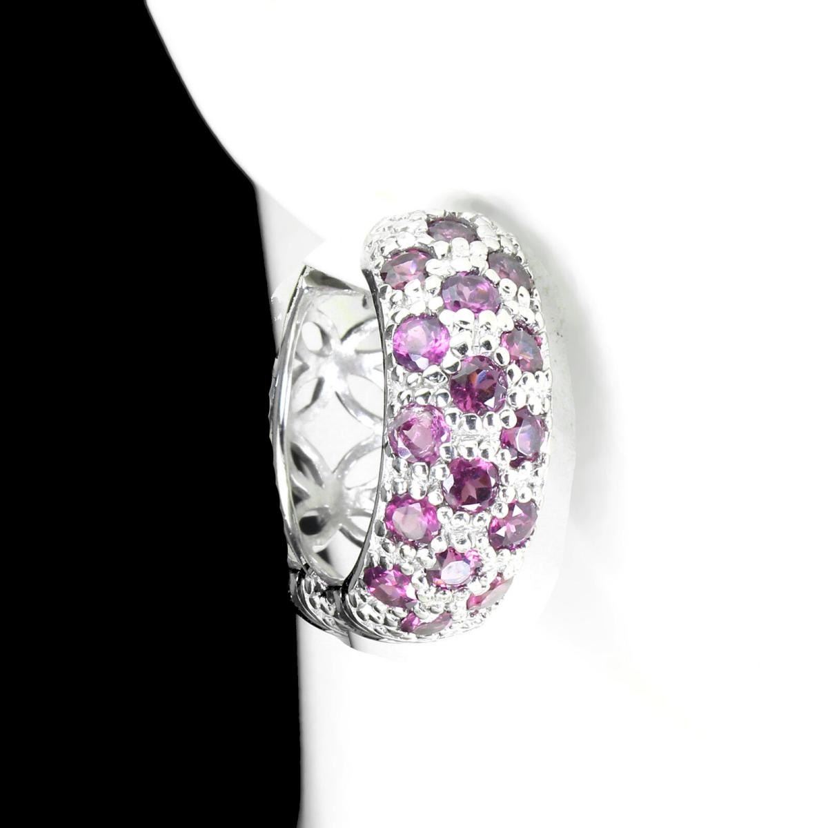 925 STERLING SILVER;PLATE-14K WHITE GOLD;MAIN STONE-RHODOLITE GARNET;TOTAL WEIGHT-11.21 GRAM (TOTAL WEIGHT OF SILVER + STONE)DIMENSION-* STONE 3.0 MM.;* FACE EARRINGS- 23.0 X 9.0 MM.;MAIN STONE SHAPE-ROUND CUT;MAIN STONE COLOR- PINK RASPBERRY;CLARITY/GRADE-IF TO VVS;TREATMENT-UNHEATED;ORIGIN-AFRICA;HARDNESS-7.0 - 7.5;