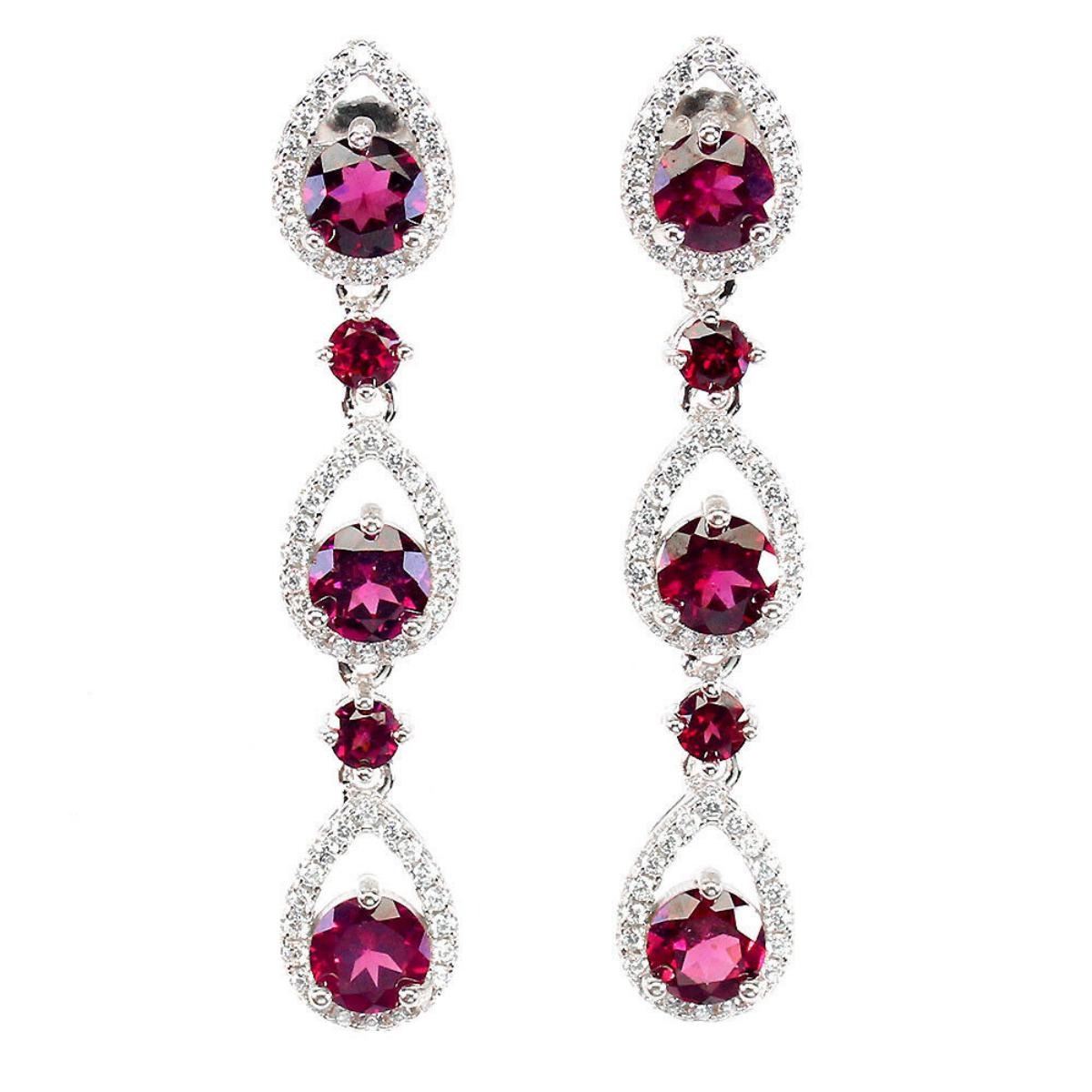 925 STERLING SILVER;PLATE-14K WHITE GOLD;MAIN STONE-RHODOLITE GARNET;TOTAL WEIGHT-6.74 GRAM (TOTAL WEIGHT OF SILVER + STONE)DIMENSION-* STONE 3.0 TO 5.0 MM.;* FACE EARRINGS- 40.0 X 8.0 MM.;MAIN STONE SHAPE-ROUND CUT;MAIN STONE COLOR-TOP RICH PINK RASPBERRY;CLARITY/GRADE-IF TO VVS;TREATMENT-UNHEATED;ORIGIN-AFRICA;HARDNESS-7.0 - 7.5;