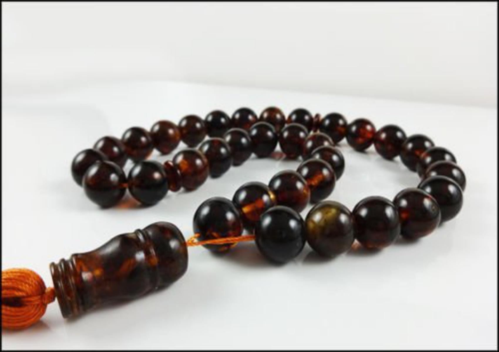 Natural Amber Islamic Prayer 33 beads Tasbih.....Weight 29 grams; Amber Beads: 10x11 mm......Guranteed Natural Amber....