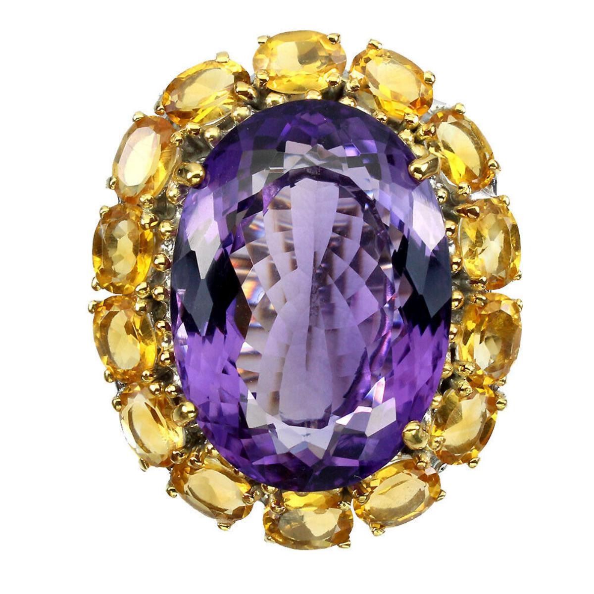 925 STERLING SILVER;PLATE-2-TONE WHITE & YELLOW 14K GOLD;RING SIZE/resizable-8.5;MAIN STONE-AMETHYSTOTHER GEMS-CITRINETOTAL WEIGHT-17.3 GRAM (TOTAL WEIGHT OF SILVER + STONE)DIMENSION-* STONE 6.0 X 4.0 TO 25.0 X 18.0 MM.* FACE RING -35.0 X 29.0 MM.-MAIN STONE SHAPE-OVAL CUT-MAIN STONE COLOR- PURPLE-CLARITY/GRADE-IF;TREATMENT-UNHEATED;ORIGIN-URUGUAY;HARDNESS-7;
