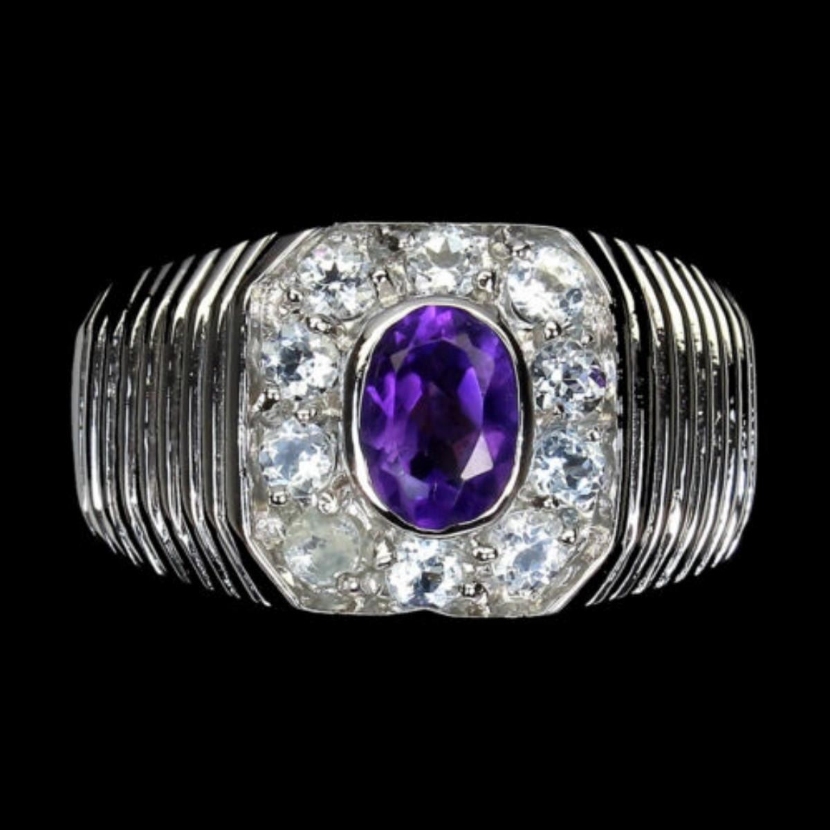 925 STERLING SILVER;PLATE-14K WHITE GOLD;RING SIZE-10(RESIZABLE);MAIN STONE-AMETHYST;OTHER GEMS-AQUAMARINE;TOTAL WEIGHT-6.54 GRAM (TOTAL WEIGHT OF SILVER + STONE);DIMENSION-* STONE 2.5 TO 7.0 X 5.0 MM.* RING SIZE 10.0* FACE RING 14.0 X 13.0 MM.;MAIN STONE SHAPE-OVAL;MAIN STONE COLOR-PURPLE;CLARITY/GRADE-IF TO VVS;TREATMENT-UNHEATED;ORIGIN-BRAZIL;HARDNESS-7;