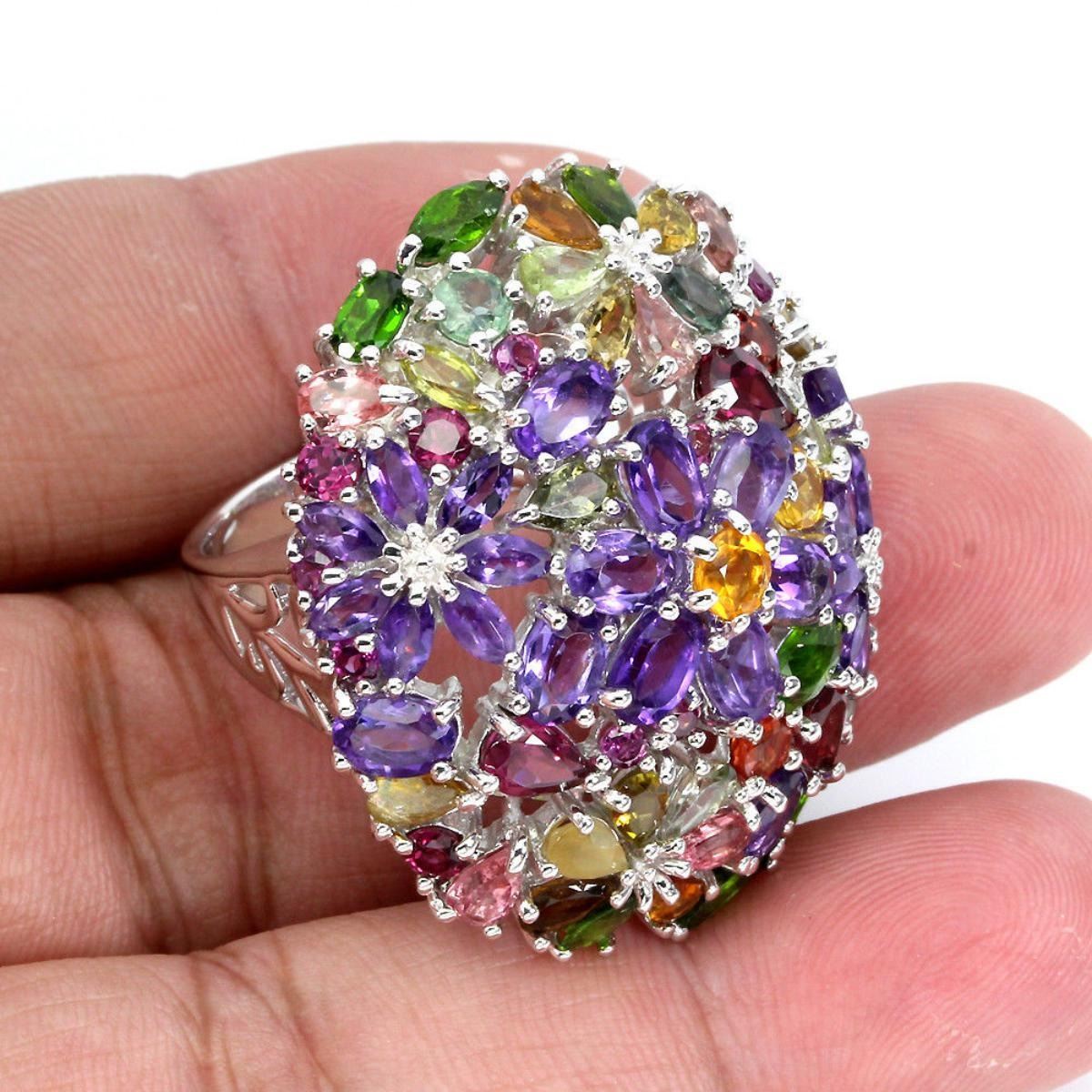925 STERLING SILVERPLATE14K WHITE GOLDRING SIZE10(resizeable)MAIN STONEAMETHYSTOTHER GEMSCHROME DIOPSIDE,CITRINE,PERIDOT,RHODOLITE GARNET,SAPPHIRE,TOURMALINETOTAL WEIGHT108.02 CT (TOTAL WEIGHT OF SILVER + STONE)DIMENSION* STONE 2.5 TO 6.0 X 4.0 MM. * RING SIZE 10.0 * FACE RING 40.0 X 35.0 MM.MAIN STONE SHAPEOVAL CUTMAIN STONE COLORTOP RICH PURPLECLARITY/GRADEIF TO VVSLUSTERWONDERFULTREATMENTUNHEATEDORIGINBRAZILHARDNESS5.0 - 9.0