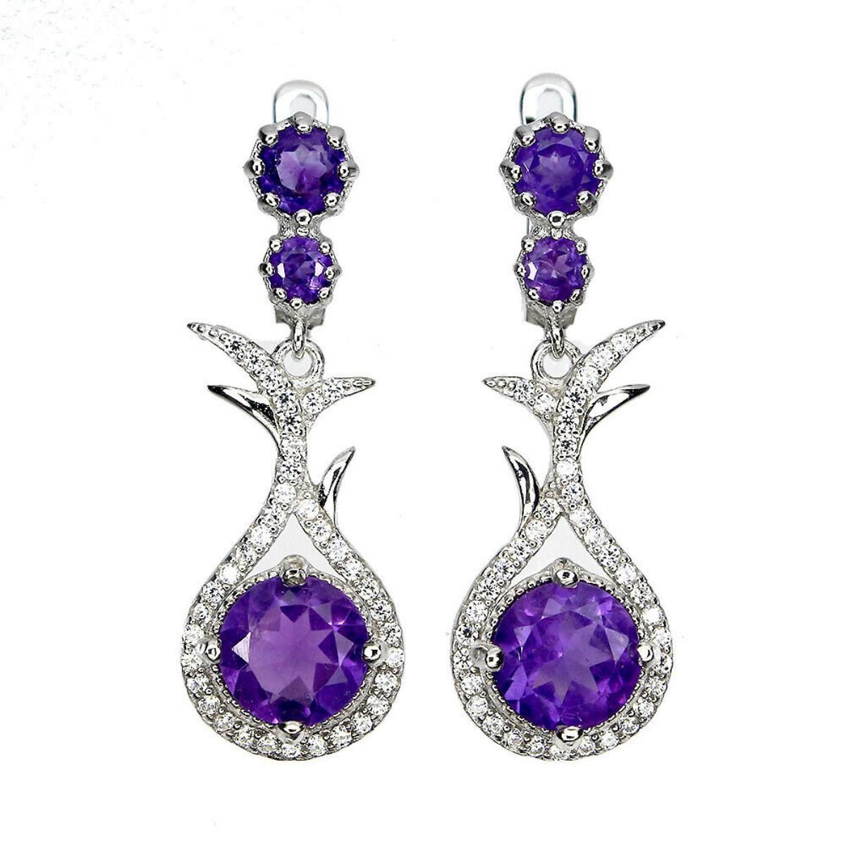 925 STERLING SILVER;PLATE-14K WHITE GOLD;MAIN STONE-AMETHYST;TOTAL WEIGHT-6.43 GRAM (TOTAL WEIGHT OF SILVER + STONE);DIMENSION-* STONE 3.0 TO 7.0 MM.* FACE EARRINGS 31.0 X 11.0 MM.;MAIN STONE SHAPE-ROUND; MAIN STONE COLOR-PURPLE;CLARITY/GRADE-IF;TREATMENT-UNHEATED;ORIGIN-URUGUAY;HARDNESS-7;