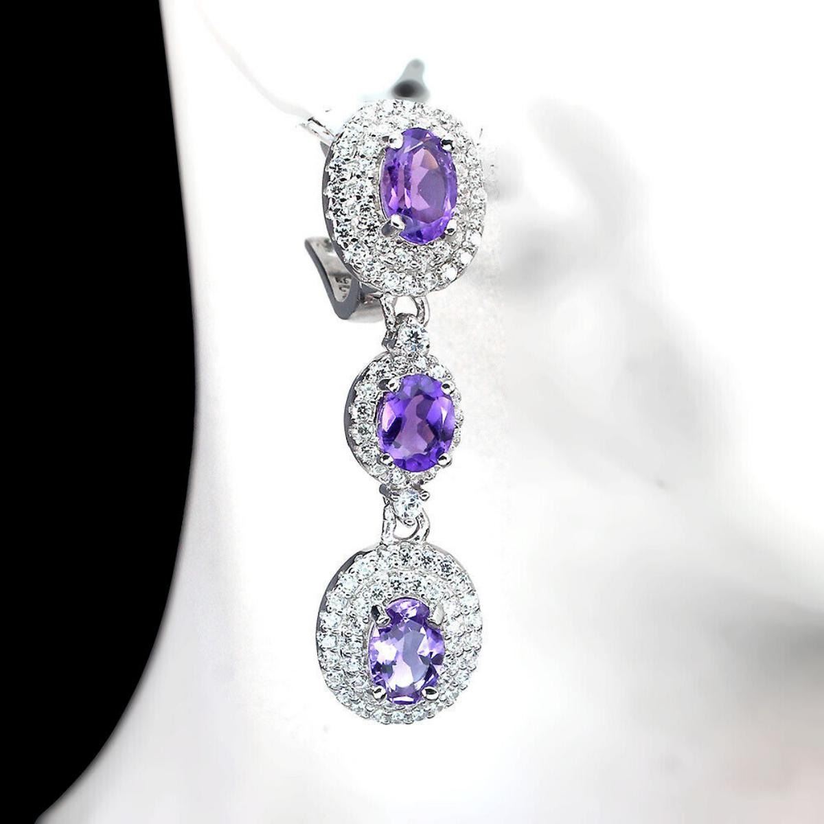 925 STERLING SILVER;PLATE-14K WHITE GOLD;MAIN STONE-AMETHYST;TOTAL WEIGHT-6.41 GRAM (TOTAL WEIGHT OF SILVER + STONE);DIMENSION-* STONE 5.0 X 4.0 TO 6.0 X 4.0 MM.* FACE EARRINGS 33.0 X 9.0 MM.;MAIN STONE SHAPE-OVAL ;MAIN STONE COLOR-PURPLE;CLARITY/GRADE-IF TO VVS;TREATMENT-UNHEATED;ORIGIN-BRAZIL;HARDNESS-7;