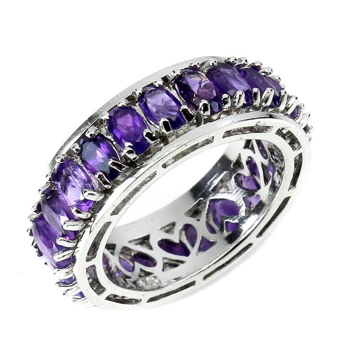 925 STERLING SILVER;PLATE-14K WHITE GOLD;RING SIZE/8;MAIN STONE-AMETHYST;TOTAL WEIGHT-7.9 GRAM (TOTAL WEIGHT OF SILVER + STONE)DIMENSION-* STONE 5.0 X 3.0 MM.;* RING SIZE- 8.0;* FACE RING- 25.0 X 8.0 MM.;MAIN STONE SHAPE-OVAL CUT;MAIN STONE COLOR-TOP RICH PURPLE;CLARITY/GRADE-IF TO VVS;TREATMENT-UNHEATED;ORIGIN--URUGUAY;HARDNESS-7;