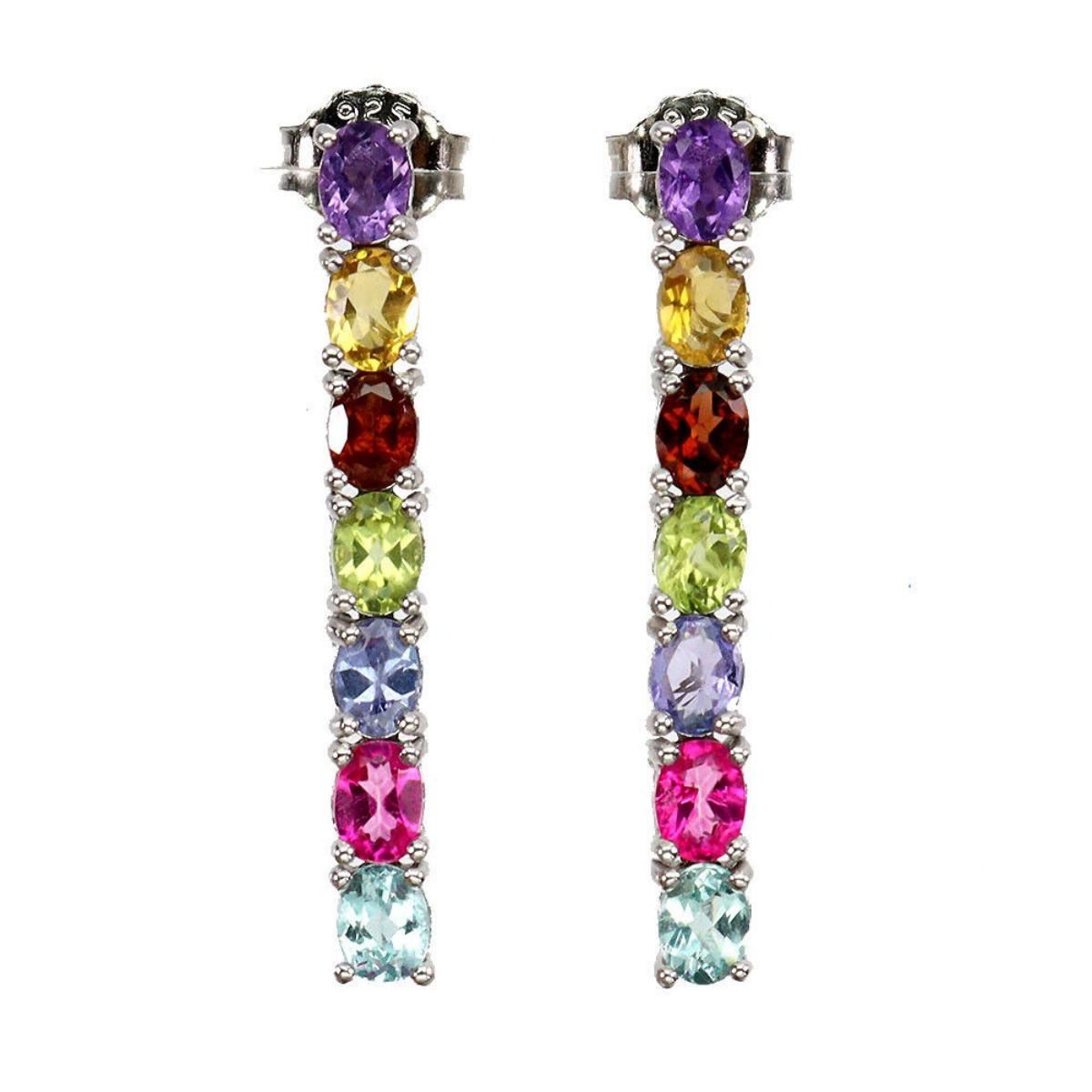 925 STERLING SILVER;PLATE-14K WHITE GOLD;MAIN STONE-AMETHYST;OTHER GEMS-APATITE, CITRINE, MOZAMBIQUE GARNET, PERIDOT, PINK TOPAZ, TANZANITE;TOTAL WEIGHT-3.56 GRAM (TOTAL WEIGHT OF SILVER + STONE)DIMENSION-* STONE 4.0 X 3.0 MM. * FACE EARRINGS 29.0 X 4.0 MM.MAIN STONE SHAPE-OVAL CUT;MAIN STONE COLOR-TOP RICH PURPLE;CLARITY/GRADE-IF TO VVS;LUSTER-GORGEOUS;TREATMENT-UNHEATED;ORIGIN-BRAZIL;HARDNESS-7;