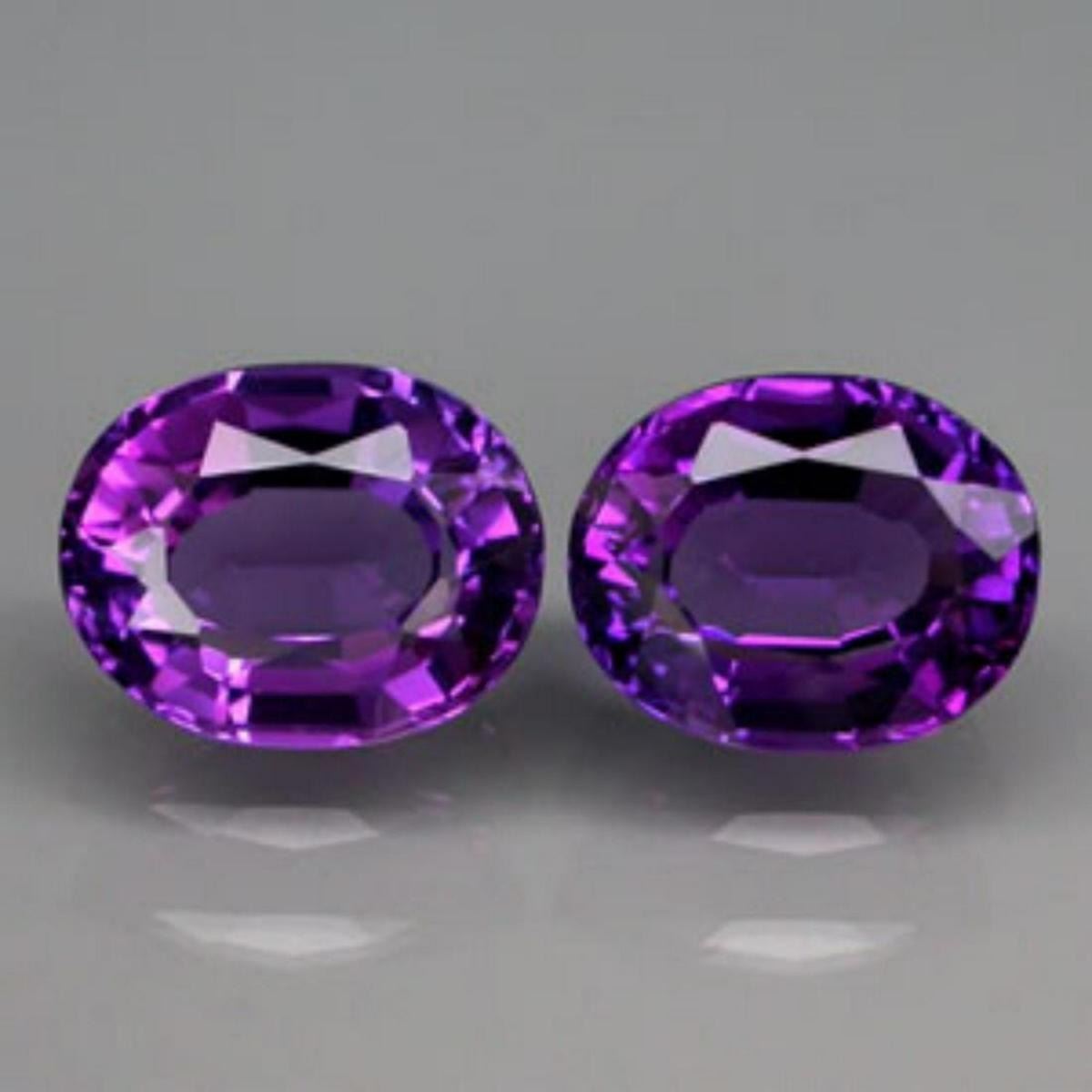 Natural Amethyst Pair 20.21 Carats -.......Oval Shape...origin - Brazil....Hardness:7; Amethyst is a powerful and protective stone. It guards against psychic attack, transmuting the energy into love and protecting the wearer from all types of harm, including geopathic or electromagnetic stress and ill wishes from others. Amethyst is a natural tranquiliser, it relieves stress and strain, soothes irritability, balances mood swings, dispels anger, rage, fear and anxiety. Alleviates sadness and grief, and dissolves negativity. Amethyst activates spiritual awareness, opens intuition and enhances psychic abilities. It has strong healing and cleansing powers. Amethyst encourages sobriety, having a sobering effect on overindulgence of alcohol, drugs or other addictions. It calms and stimulates the mind, helping you become more focused, enhancing memory and improving motivation. Amethyst assists in remembering and understanding dreams. It relieves insomnia. Encourages selflessness and spiritual wisdom.Amethyst boosts hormone production, tunes the endocrine system and metabolism. It strengthens the immune system, reduces pain and strengthens the body to fight against cancer. It destroys malignant tumours and aids in tissue regeneration. Cleanses the blood. Relieves physical, emotional and psychological pain or stress. Amethyst eases headaches and releases tension. It reduces bruising, swellings, injuries, and treats hearing disorders. Amethyst heals diseases of the lungs and respiratory tract, skin conditions, cellular disorders and diseases of the digestive tract.