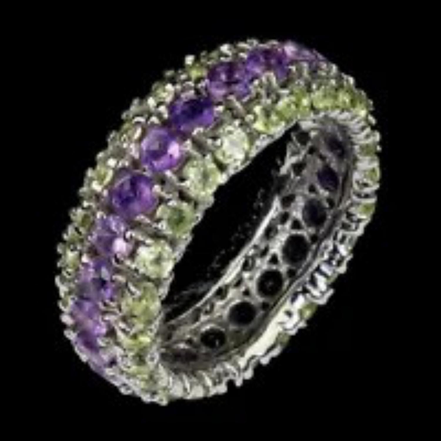 925 STERLING SILVER;PLATE-14K WHITE GOLD;RING SIZE-7.5;MAIN STONE- Amethyst & PERIDOT;;CLARITY/GRADE-IF TO VVS;TREATMENT-UNHEATED;ORIGIN-Brazil/PAKISTAN;HARDNESS-6.5 - 7.0;