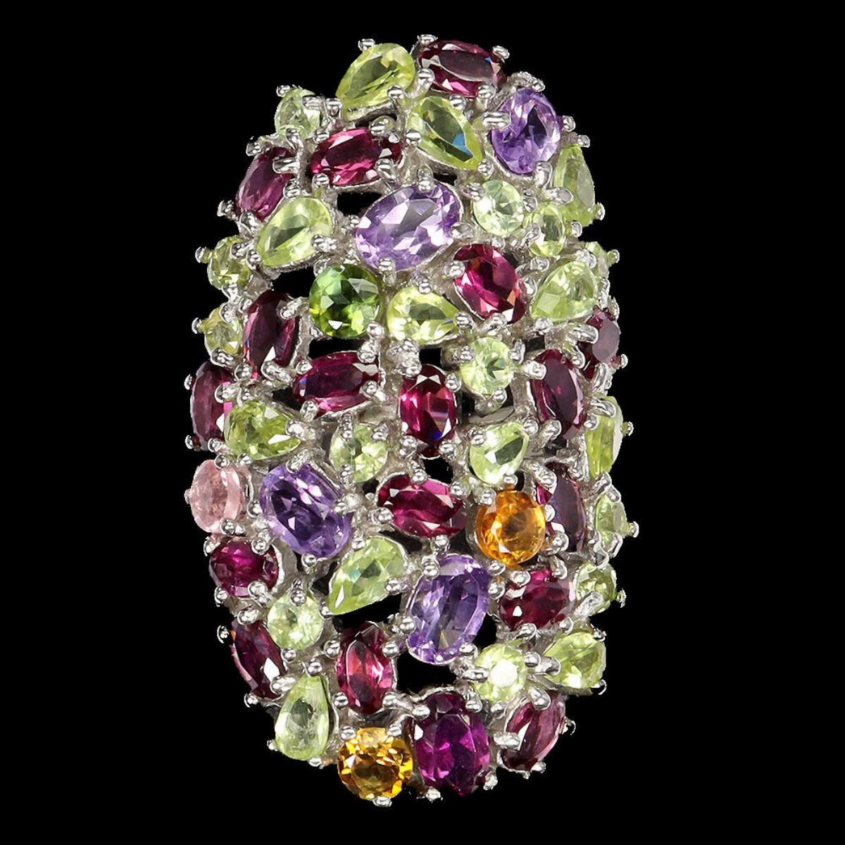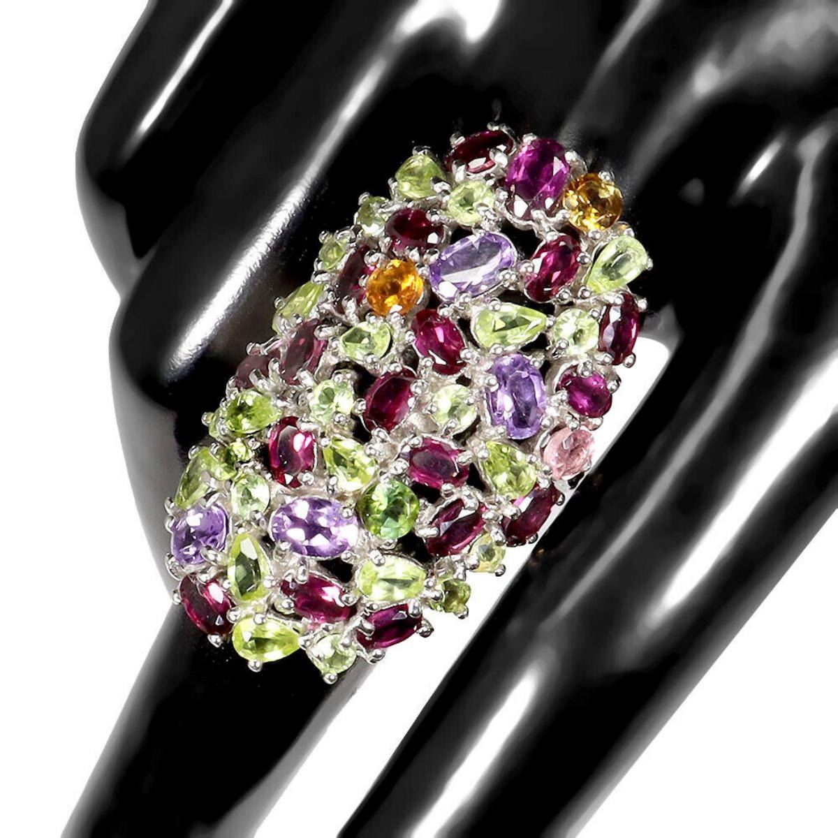 925 STERLING SILVER;PLATE-14K WHITE GOLD;RING SIZE/resizable-8;MAIN STONE-AMETHYST;OTHER GEMS-PERIDOT, RHODOLITE GARNET, SAPPHIRE, TOURMALINE;TOTAL WEIGHT-14.54 GRAM (TOTAL WEIGHT OF SILVER + STONE)DIMENSION-* STONE 1.5 TO 6.0 X 4.0 MM.* FACE RING- 43.0 X 25.0 MM.;MAIN STONE SHAPE-OVAL CUT;MAIN STONE COLOR-TOP RICH PURPLE;CLARITY/GRADE-IF TO VVS;TREATMENT-UNHEATED;ORIGIN-BRAZIL;HARDNESS-7;