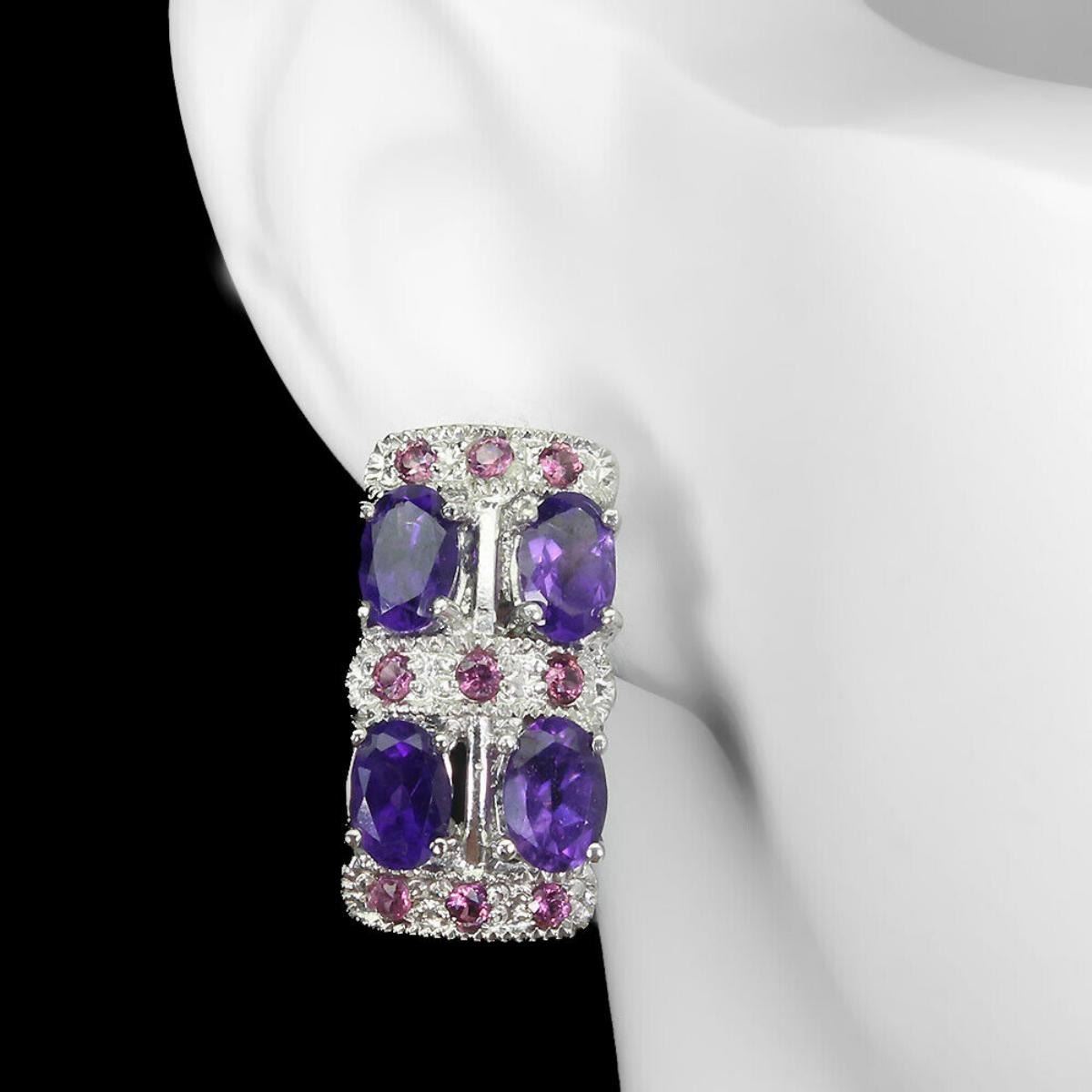 925 STERLING SILVER;PLATE-14K WHITE GOLD;MAIN STONE-AMETHYST;OTHER GEMS-RHODOLITE GARNET;TOTAL WEIGHT-6.46 GRAM (TOTAL WEIGHT OF SILVER + STONE);DIMENSION- * STONE 1.5 TO 6.0 X 4.0 MM.* FACE EARRINGS 20.0 X 11.0 MM.;MAIN STONE SHAPE-OVAL CUT;MAIN STONE COLOR- PURPLE;CLARITY/GRADE-IF TO VVS;TREATMENT-UNHEATED;ORIGIN-BRAZIL;HARDNESS-7;