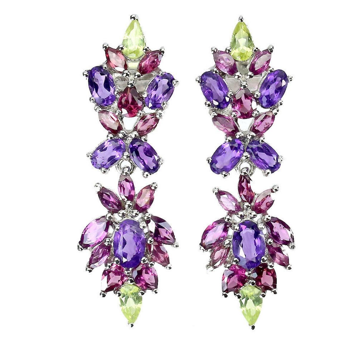 925 STERLING SILVER;PLATE-14K WHITE GOLD;MAIN STONE-AMETHYST;OTHER GEMS-RHODOLITE GARNET;TOTAL WEIGHT-5.74 GRAM (TOTAL WEIGHT OF SILVER + STONE)DIMENSION-* STONE 4.0 X 2.0 TO 6.0 X 4.0 MM.;* FACE EARRINGS- 39.0 X 12.0 MM.;MAIN STONE SHAPE-OVAL CUT;MAIN STONE COLOR- PURPLE;CLARITY/GRADE-IF TO VVS;TREATMENT-UNHEATED;ORIGIN-BRAZIL;HARDNESS-7;