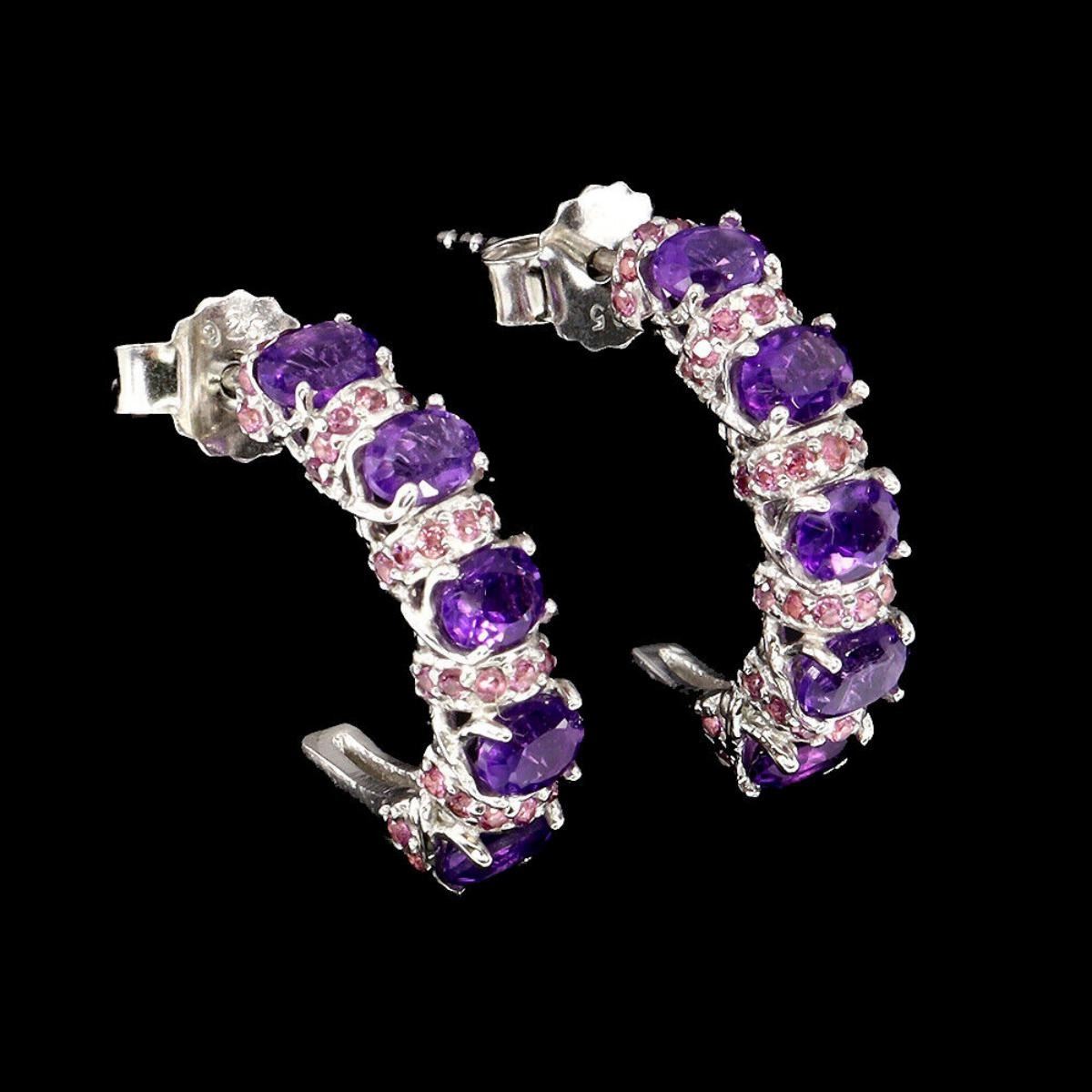 925 STERLING SILVER;PLATE-14K WHITE GOLD;MAIN STONE-AMETHYST;OTHER GEMS-RHODOLITE GARNET;TOTAL WEIGHT-3.34 GRAM (TOTAL WEIGHT OF SILVER + STONE)DIMENSION-* STONE 1.0 TO 4.0 X 3.0 MM.;* FACE EARRINGS- 18.0 X 4.0 MM.;MAIN STONE SHAPE-OVAL CUT;MAIN STONE COLOR-RICH PURPLE;CLARITY/GRADE-IF TO VVS;TREATMENT-UNHEATEDORIGIN-URUGUAYHARDNESS-7;