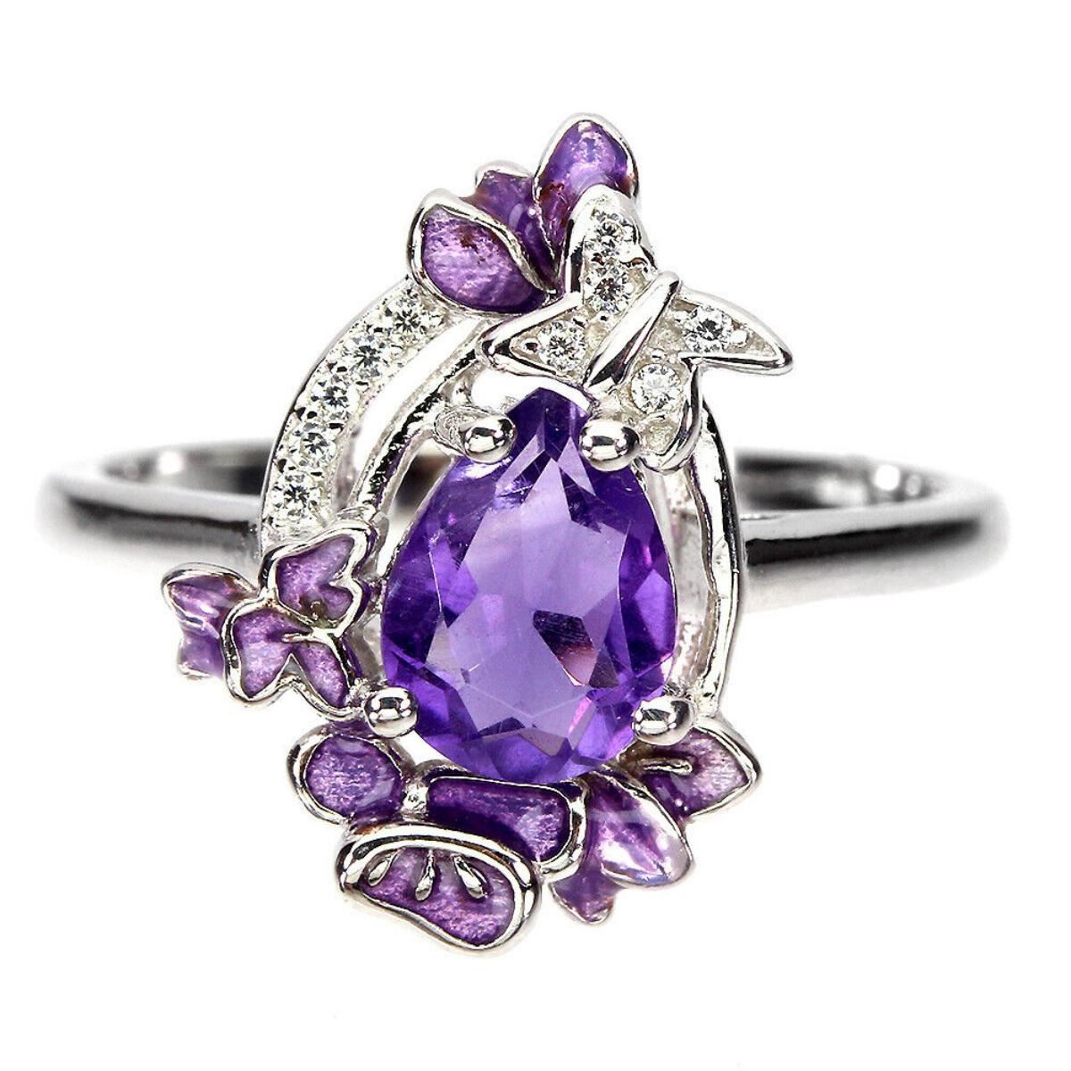 925 STERLING SILVER;PLATE-14K WHITE GOLD;RING SIZE-8(RESIZABLE);MAIN STONE-AMETHYST;TOTAL WEIGHT-3.05 GRAM (TOTAL WEIGHT OF SILVER + STONE);DIMENSION - * STONE 8.0 X 6.0 MM.* RING SIZE 8.0* FACE RING 17.0 X 12.0 MM.;MAIN STONE SHAPE-PEAR; MAIN STONE COLOR-PURPLE;CLARITY/GRADE-IF TO VVS;TREATMENT-UNHEATED;ORIGIN-URUGUAY;HARDNESS-7;
