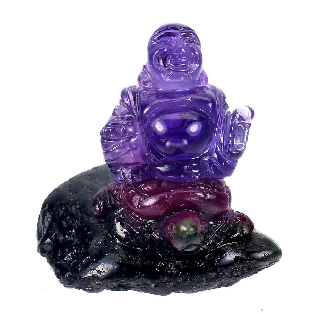 MAIN STONE-AMETHYST:OTHER GEMS-RUBY:TOTAL WEIGHT-113.18 CT:DIMENSION-36.0 X 33.0 X 24.0 MM.;MAIN STONE SHAPE-HAPPY BUDDHA CARVING;MAIN STONE COLOR-PURPLE;CLARITY/GRADE-VVS;TREATMENT-UNHEATED;ORIGIN-URUGUAY;HARDNESS-7;