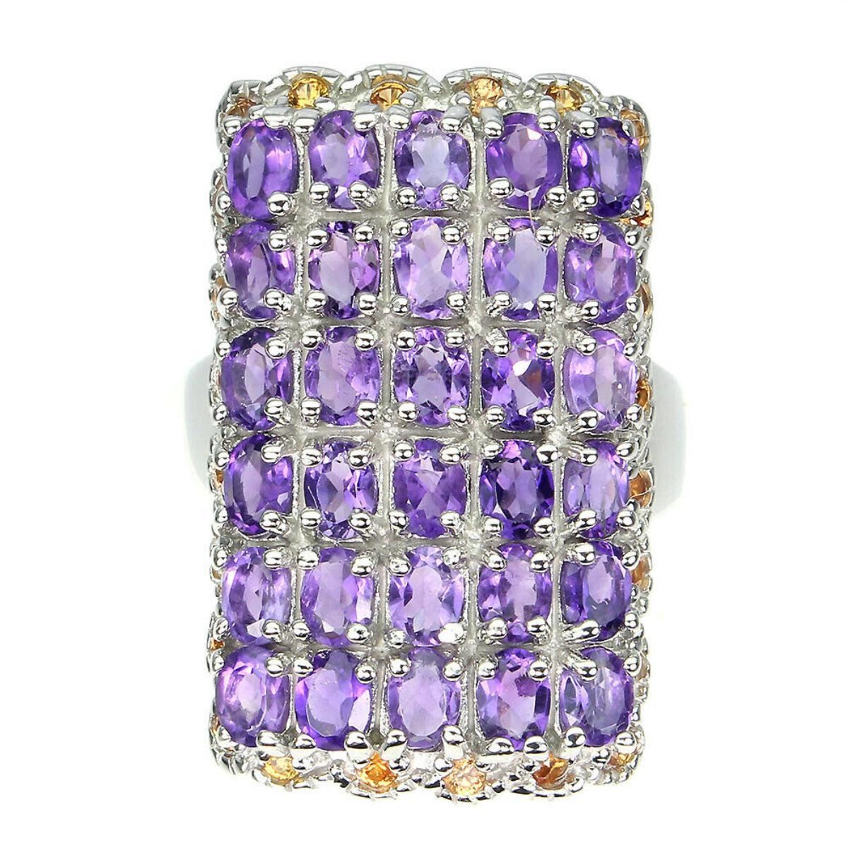 925 STERLING SILVER;PLATE-14K WHITE GOLD;RING SIZE-9.5(RESIZABLE);MAIN STONE-AMETHYST;OTHER GEMS-SAPPHIRE;TOTAL WEIGHT-11.66 GRAM (TOTAL WEIGHT OF SILVER + STONE);DIMENSION-* STONE 2.0 TO 4.0 X 3.0 MM. * RING SIZE 9.5 * FACE RING 30.0 X 18.0 MM.;MAIN STONE SHAPE-OVAL; MAIN STONE COLOR-PURPLE;CLARITY/GRADE-IF TO VVS;TREATMENT-UNHEATED;ORIGIN-BRAZIL;HARDNESS-7;