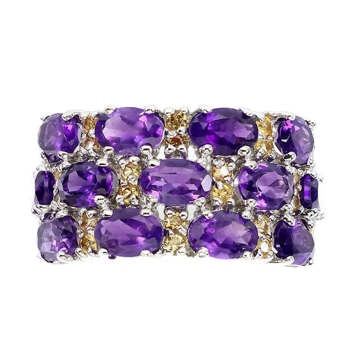 925 STERLING SILVER;PLATE-14K WHITE GOLD;RING SIZE-8(RESIZABLE);MAIN STONE-AMETHYST;OTHER GEMS-SAPPHIRE ;TOTAL WEIGHT-7.18 GRAM (TOTAL WEIGHT OF SILVER + STONE);DIMENSION-* STONE 1.5 TO 6.0 X 4.0 MM. * RING SIZE 8.0 * FACE RING 25.0 X 13.0 MM.;MAIN STONE SHAPE-OVAL;MAIN STONE COLOR- PURPLE;CLARITY/GRADE-IF TO VVS;TREATMENT-UNHEATED;ORIGIN-BRAZIL;HARDNESS-7;