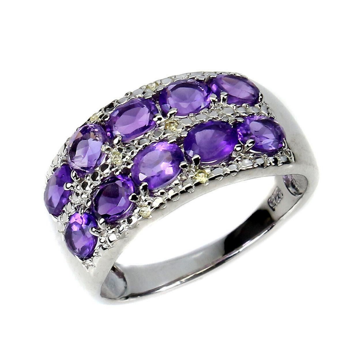 925 STERLING SILVER;PLATE-14K WHITE GOLD;RING SIZE-7(RESIZABLE);MAIN STONE-AMETHYST;OTHER GEMS-SAPPHIRE;TOTAL WEIGHT-3.46 GRAM (TOTAL WEIGHT OF SILVER + STONE);DIMENSION-* STONE 1.0 TO 4.0 X 3.0 MM. * RING SIZE 7.0 * FACE RING 18.0 X 10.0 MM.;MAIN STONE SHAPE-OVAL; MAIN STONE COLOR-PURPLE;CLARITY/GRADE-IF TO VVS;TREATMENT-UNHEATED;ORIGIN-URUGUAY;HARDNESS-7;