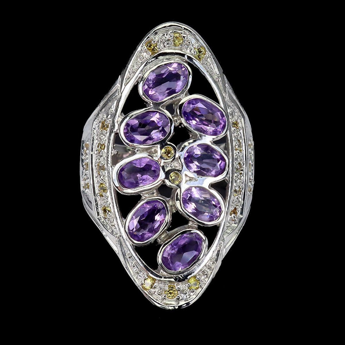 925 STERLING SILVER;PLATE-14K WHITE GOLD;RING SIZE/resizable-9;MAIN STONE-AMETHYST;OTHER GEMS-SAPPHIRE;TOTAL WEIGHT-11.36 GRAM (TOTAL WEIGHT OF SILVER + STONE)DIMENSION-* STONE 1.5 TO 6.0 X 4.0 MM.;* FACE RING- 36.0 X 23.0 MM.;MAIN STONE SHAPE-OVAL CUT;MAIN STONE COLOR-TOP RICH PURPLE;CLARITY/GRADE-IF TO VVS;TREATMENT-UNHEATED;ORIGIN-URUGUAY;HARDNESS-7;