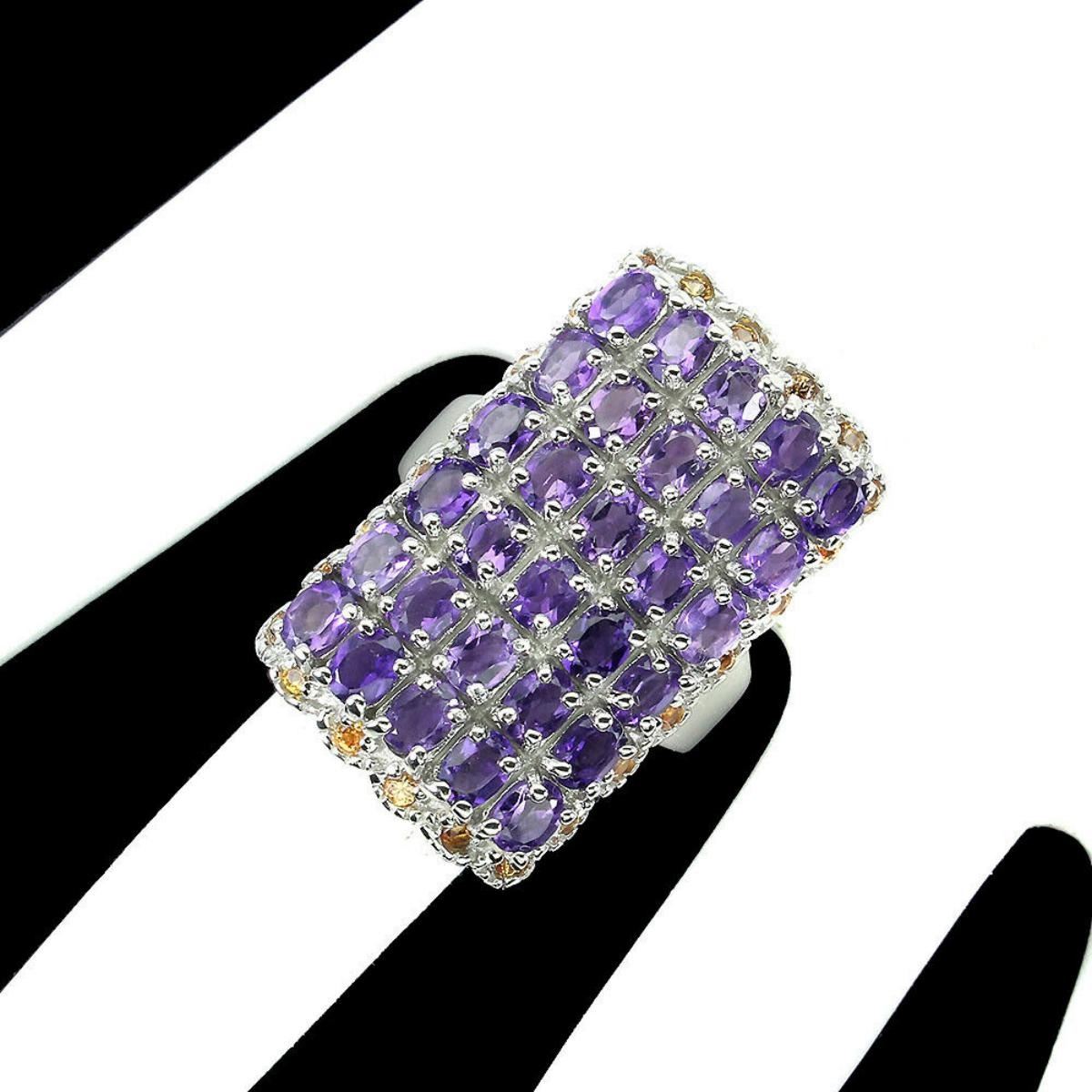925 STERLING SILVER;PLATE-14K WHITE GOLD;RING SIZE-9.5(RESIZABLE);MAIN STONE-AMETHYST;OTHER GEMS-SAPPHIRE;TOTAL WEIGHT-11.66 GRAM (TOTAL WEIGHT OF SILVER + STONE);DIMENSION-* STONE 2.0 TO 4.0 X 3.0 MM. * RING SIZE 9.5 * FACE RING 30.0 X 18.0 MM.;MAIN STONE SHAPE-OVAL; MAIN STONE COLOR-PURPLE;CLARITY/GRADE-IF TO VVS;TREATMENT-UNHEATED;ORIGIN-BRAZIL;HARDNESS-7;