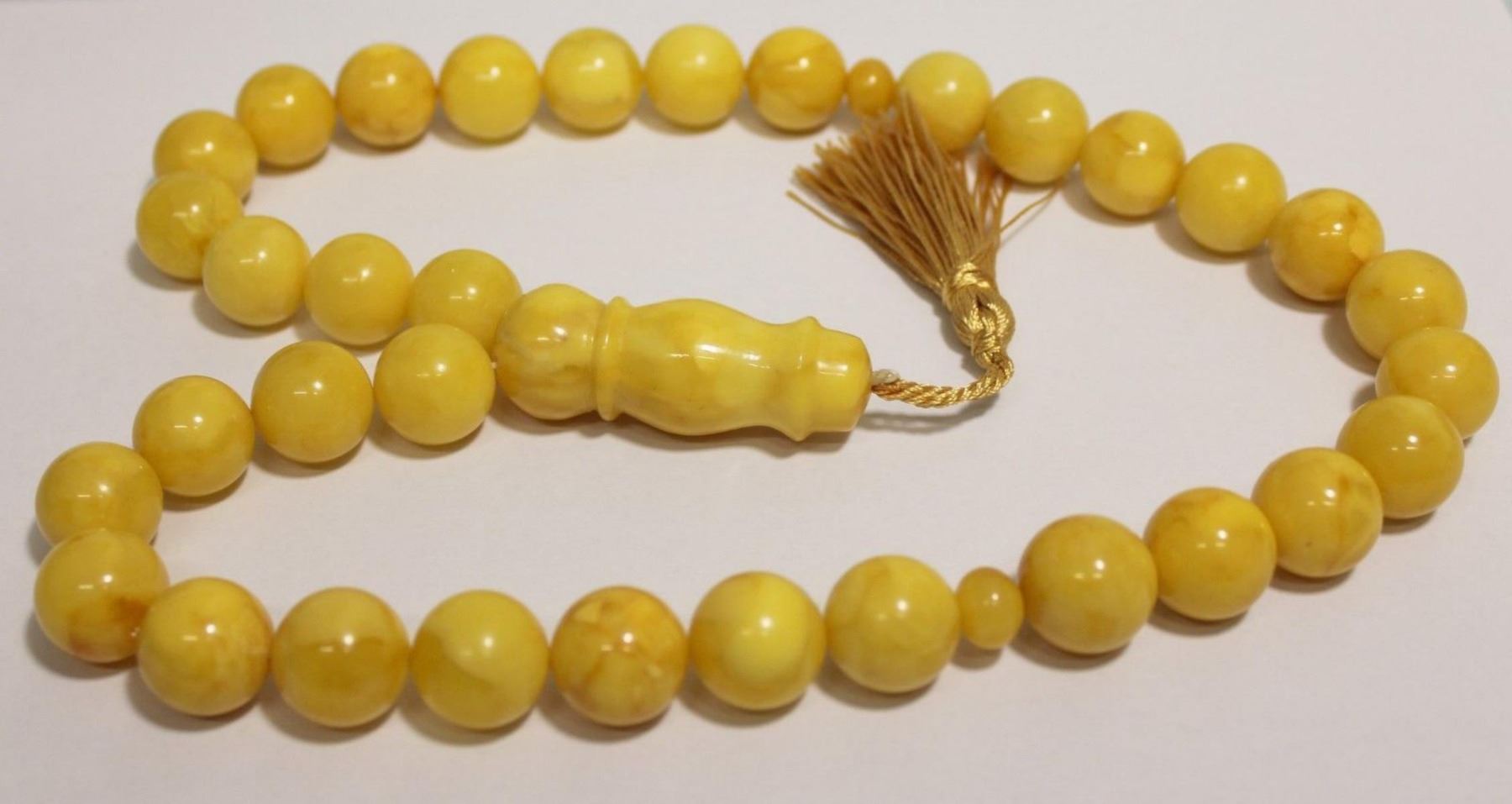 Natural Antique Amber Islamic Prayer Tasbih ; Islamic Rosary 33 ROUND BEADS; Natural GENUINE BALTIC AMBER; DIMENSIONS:Imam size:Length - 55mm;Beads diametr size:17.5mm; Weight: 112 grams