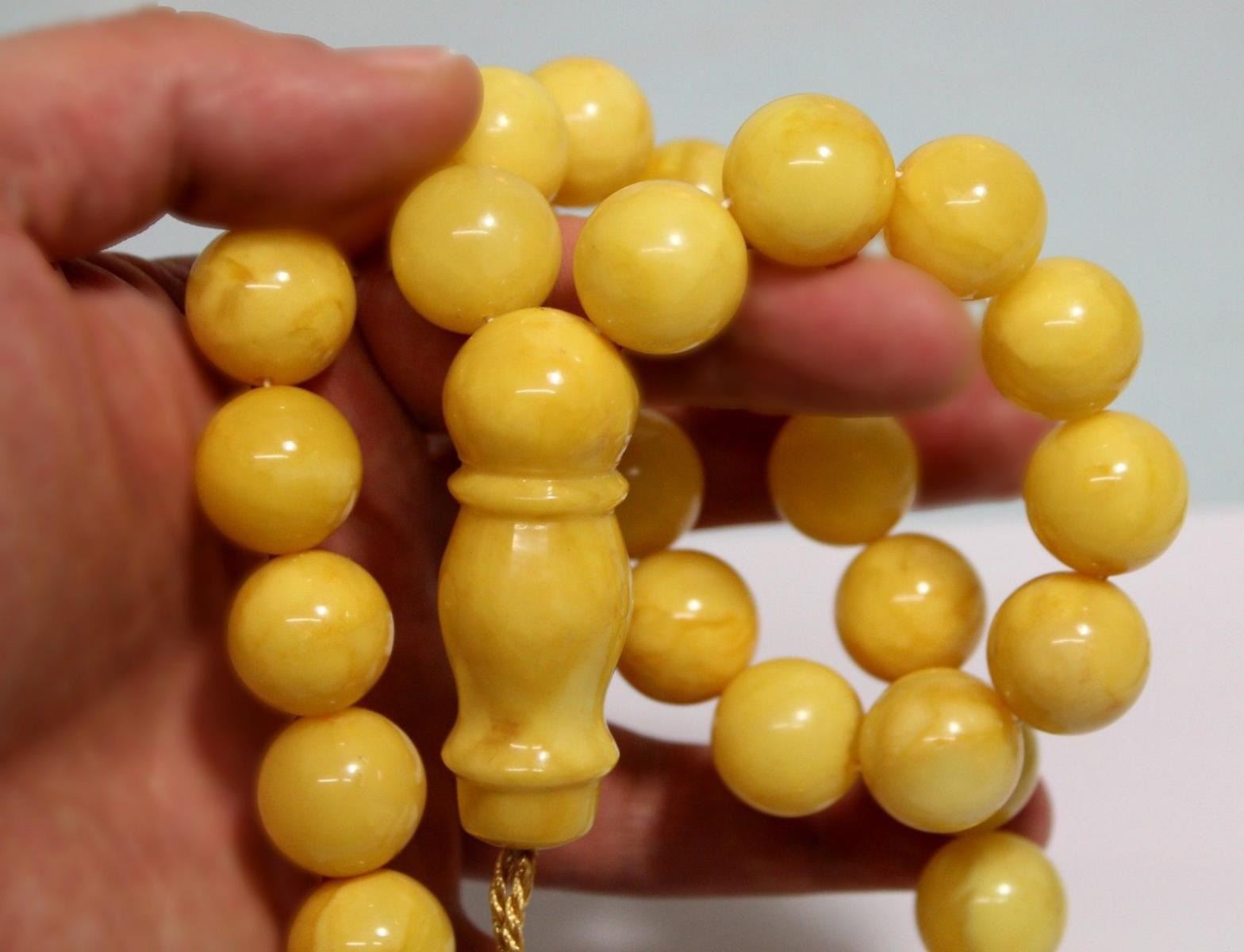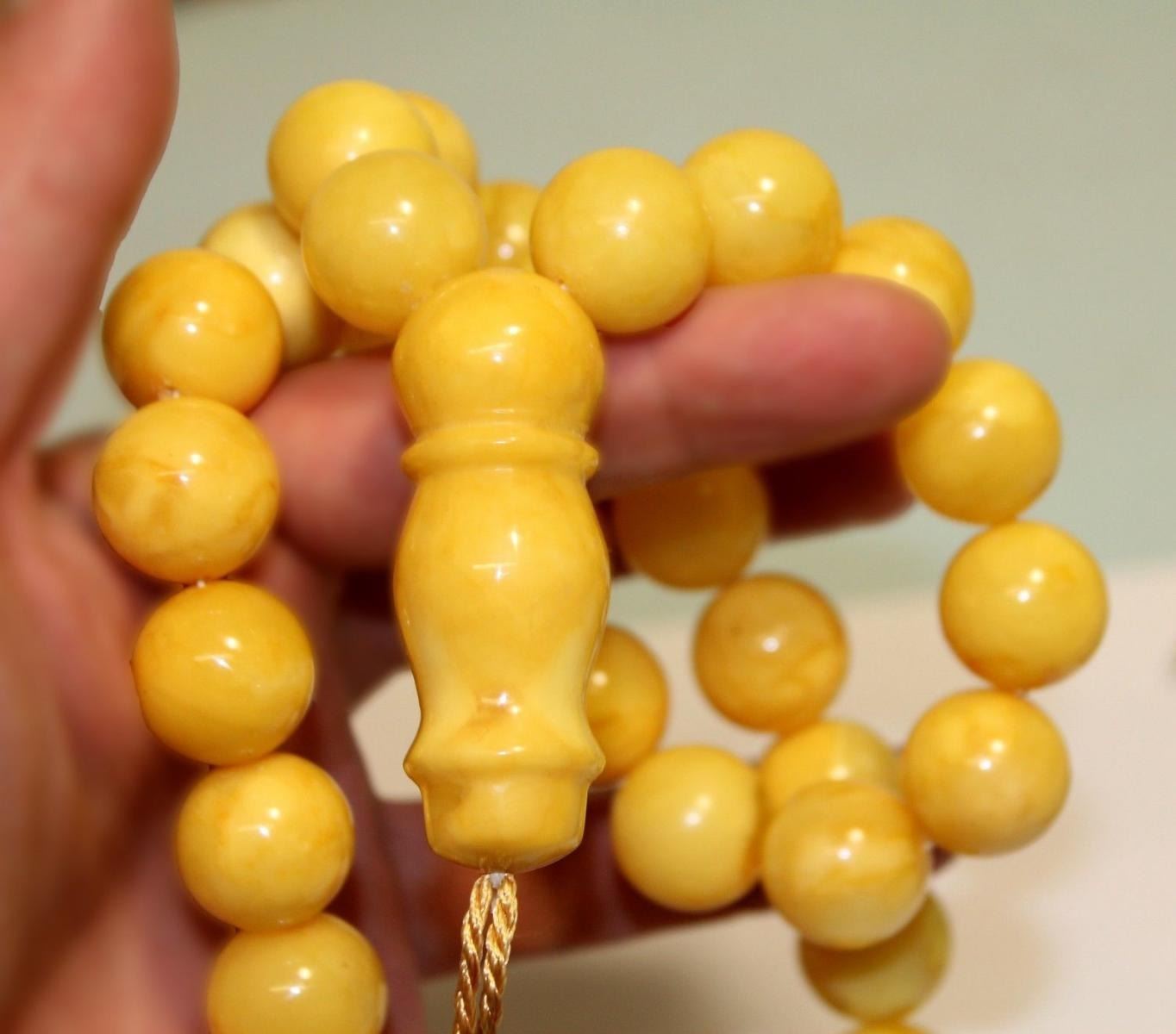 Natural Antique Amber Islamic Prayer Tasbih ; Islamic Rosary 33 ROUND BEADS; Natural GENUINE BALTIC AMBER; DIMENSIONS:Imam size:Length - 55mm;Beads diametr size:17.5mm; Weight: 112 grams