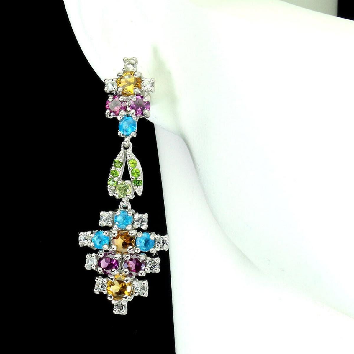 925 STERLING SILVER;PLATE-14K WHITE GOLD;MAIN STONE-CITRINE;OTHER GEMS-APATITE, AQUAMARINE, CHROME DIOPSIDE, RHODOLITE GARNET;TOTAL WEIGHT-6.17 GRAM (TOTAL WEIGHT OF SILVER + STONE)DIMENSION-* STONE 1.5 TO 4.0 MM.;* FACE EARRINGS- 43.0 X 15.0 MM.;MAIN STONE SHAPE-ROUND CUT;MAIN STONE COLOR- RICH YELLOW;CLARITY/GRADE-IF TO VVS;TREATMENT-UNHEATED;ORIGIN-BRAZIL;HARDNESS-7;