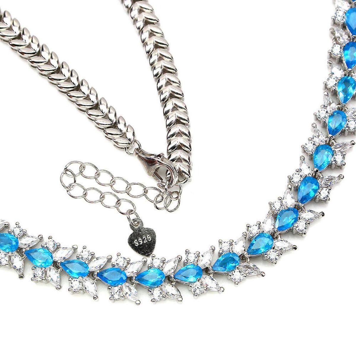 925 STERLING SILVER;PLATE-14K WHITE GOLD;LENGTH (INCHES)-17;MAIN STONE-APATITE;TOTAL WEIGHT-32.55 GRAM (TOTAL WEIGHT OF SILVER + STONE);DIMENSION-* STONE 5.0 X 3.0 MM.* TOTAL LENGTH 17.0 INCHES.* STONES PART LENGTH 240.0 X 8.0 MM.;MAIN STONE SHAPE-PEAR; MAIN STONE COLOR- BLUE;CLARITY/GRADE-IF TO VVS;TREATMENT-UNHEATED;ORIGIN-AFRICA;HARDNESS-5;