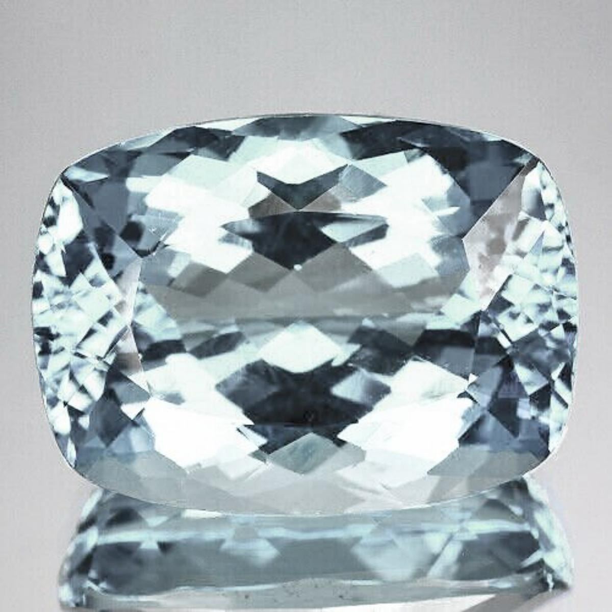 Natural Aquamarine; WEIGHT : 5.42 cts SHAPE : Cushion (Brilliant Cut) SIZE ( L x W x D ) : 13.11 x 9.71 x 7.45 mm QUANTITY : 1 piece; COLOR : Light sky; CLARITY : Flawless-VVS; ORIGIN : Brazil; HARDNESS : 8; LUSTER : Excellent TREATMENT : UNHeated 100% NATURAL;