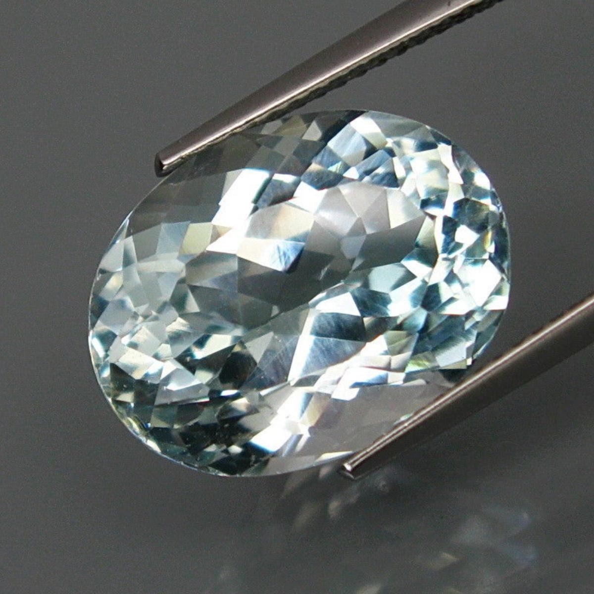 Blue Topaz SHAPE Oval WEIGHT 13.37 Ct. SIZE 15.9 X 12.3 X 9.2 mm QUANTITY 1 Piece COLOR Aquamarine colr; CLARITY CLEAN LUSTER Superior ORIGIN Brazil TREATMENT None HARDNESS 8