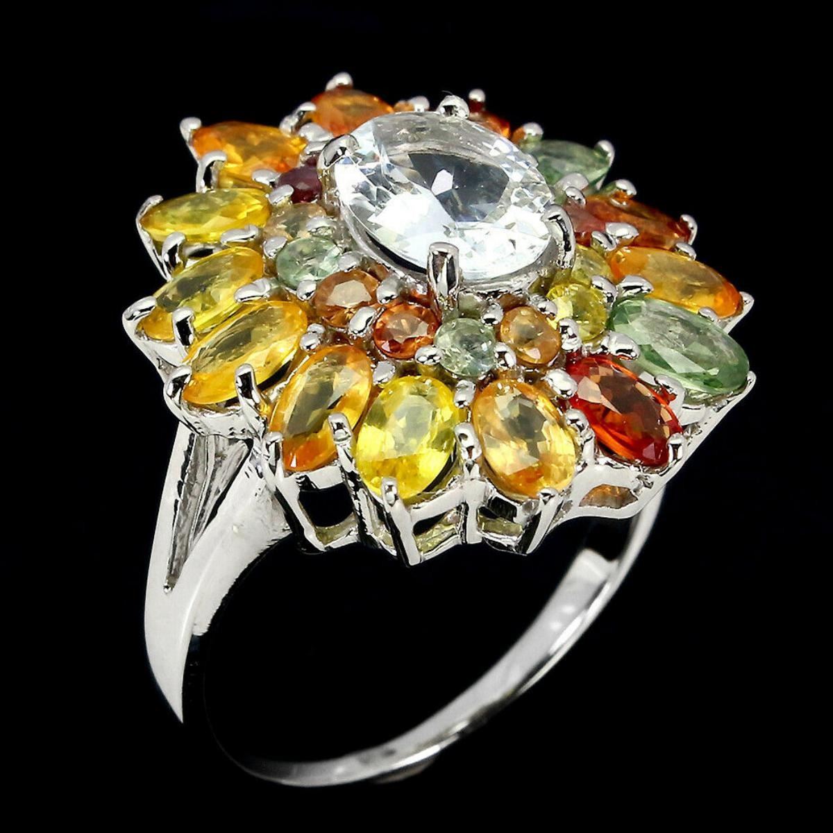 925 STERLING SILVER;PLATE-14K WHITE GOLD;RING SIZE/resizeable-9;MAIN STONE-AQUAMARINE;OTHER GEMS-SAPPHIRE;TOTAL WEIGHT-6.77 GRAM (TOTAL WEIGHT OF SILVER + STONE)DIMENSION-* STONE 2.5 TO 9.0 X 7.0 MM. * RING SIZE 9.0 * FACE RING- 24.0 X 21.0 MM.;MAIN STONE SHAPE-OVAL CUT;MAIN STONE COLOR-aqua;CLARITY/GRADE-IF TO VVS;ORIGIN-SANTA - MARIA;HARDNESS-7;