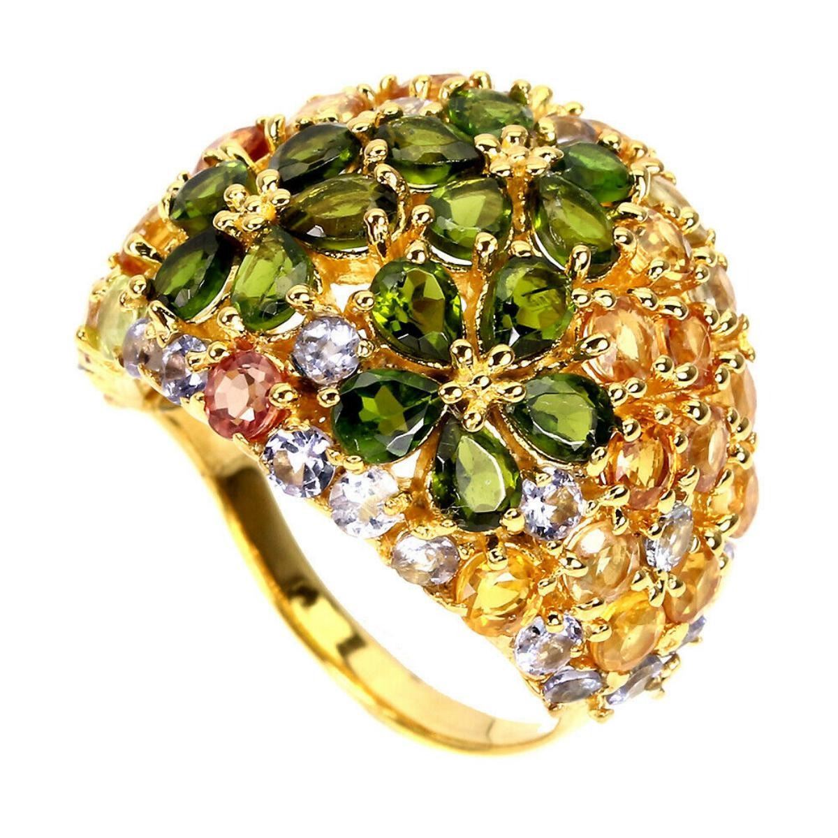 925 STERLING SILVER;PLATE14K YELLOW GOLD;RING SIZE/Resizeable-8.5;MAIN STONE-CHROME DIOPSIDE;OTHER GEMS-AQUAMARINE, SAPPHIRE, TANZANITE;TOTAL WEIGHT-8.52 GRAM (TOTAL WEIGHT OF SILVER + STONE)DIMENSION-* STONE 2.0 TO 4.0 X 3.0 MM. * RING SIZE 8.5 * FACE RING- 25.0 X 20.0 MM.;MAIN STONE SHAPE-PEAR CUT;MAIN STONE COLOR-TOP RICH GREEN;CLARITY/GRADE-IF TO VVS;LUSTER-GORGEOUS;TREATMENT-UNHEATED;ORIGIN-RUSSIA;HARDNESS-5;