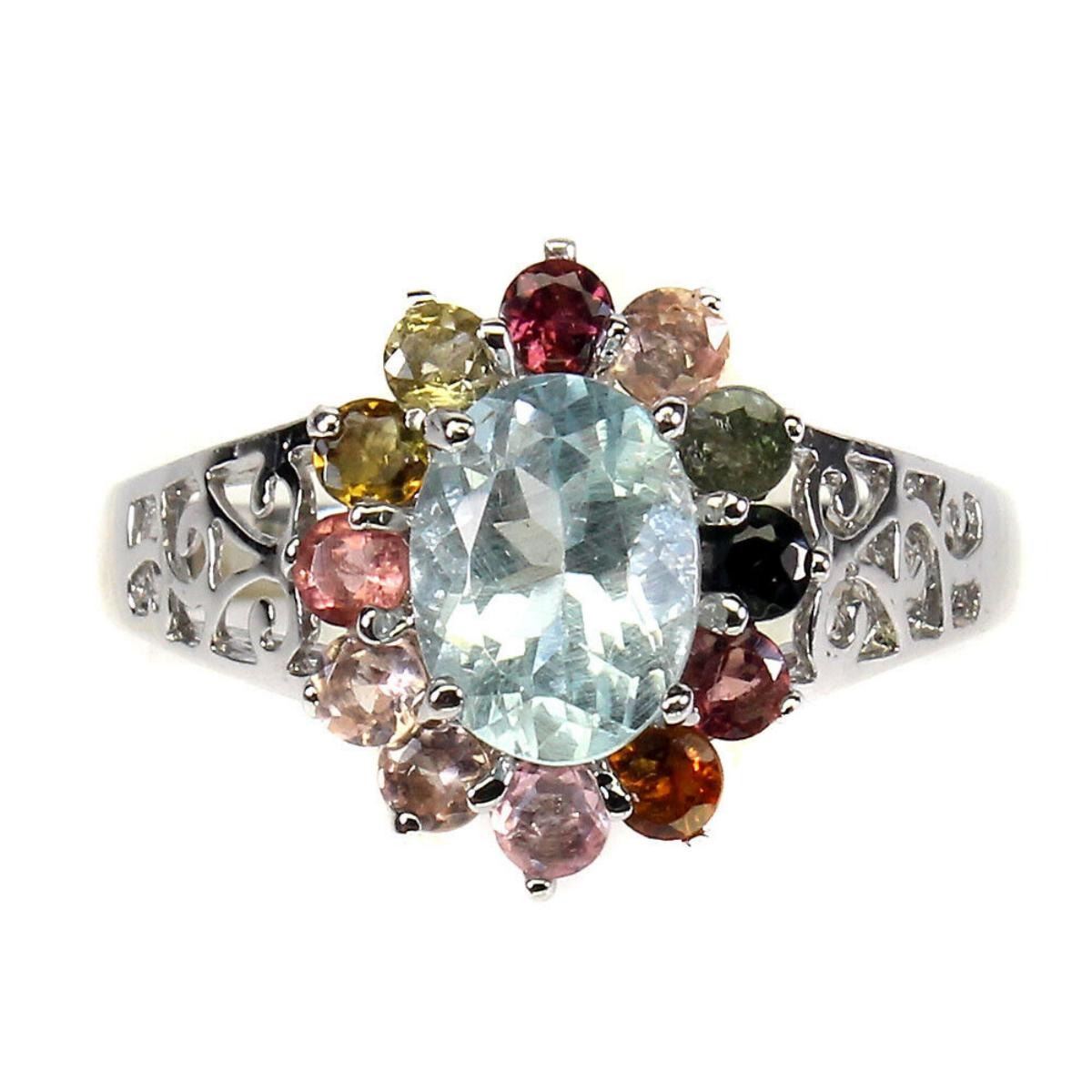 925 STERLING SILVER;PLATE-14K WHITE GOLD;RING SIZE/Resizable-8;MAIN STONE-AQUAMARINE;OTHER GEMS-TOURMALINE;TOTAL WEIGHT-3.2 GRAM (TOTAL WEIGHT OF SILVER + STONE)DIMENSION-* STONE 2.5 TO 8.0 X 6.0 MM.;* FACE RING- 14.0 X 12.0 MM.;MAIN STONE SHAPE-OVAL CUT;MAIN STONE COLOR-Aqua BLUE;CLARITY/GRADE-IF TO VVS;TREATMENT-UNHEATED;ORIGIN-BRAZIL;HARDNESS-7;