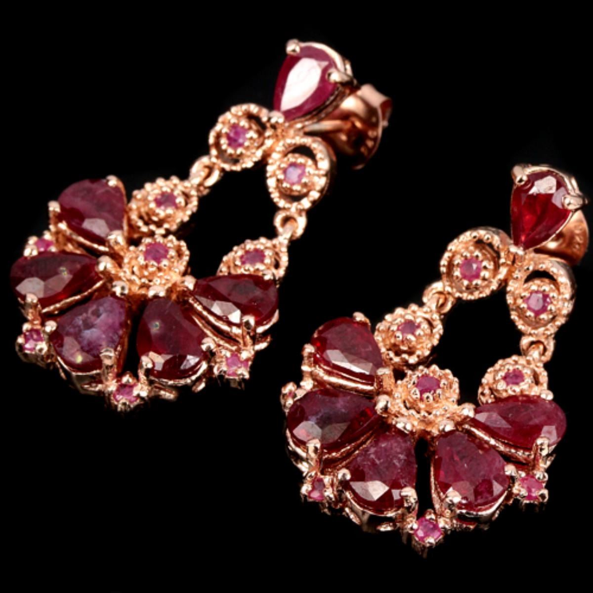 GENUINE BLOOD RED RUBY PEAR & ROUND 925 SILVER EARRING 14K PINK GOLD COATING; STONE SHAPEPEAR & ROUND FACET CUTSTONE DIMENSION7 X 5 MM. & 2 MM.ITEM WEIGHT12.4 CARATCOLORBLOOD REDCLARITYTRANSLUCENTLUSTERDELUXETREATMENTHEATEDORIGIN OF STONEAFRICAHARDNESS9.0;FACE OF EARRING 36 X 22 MM.